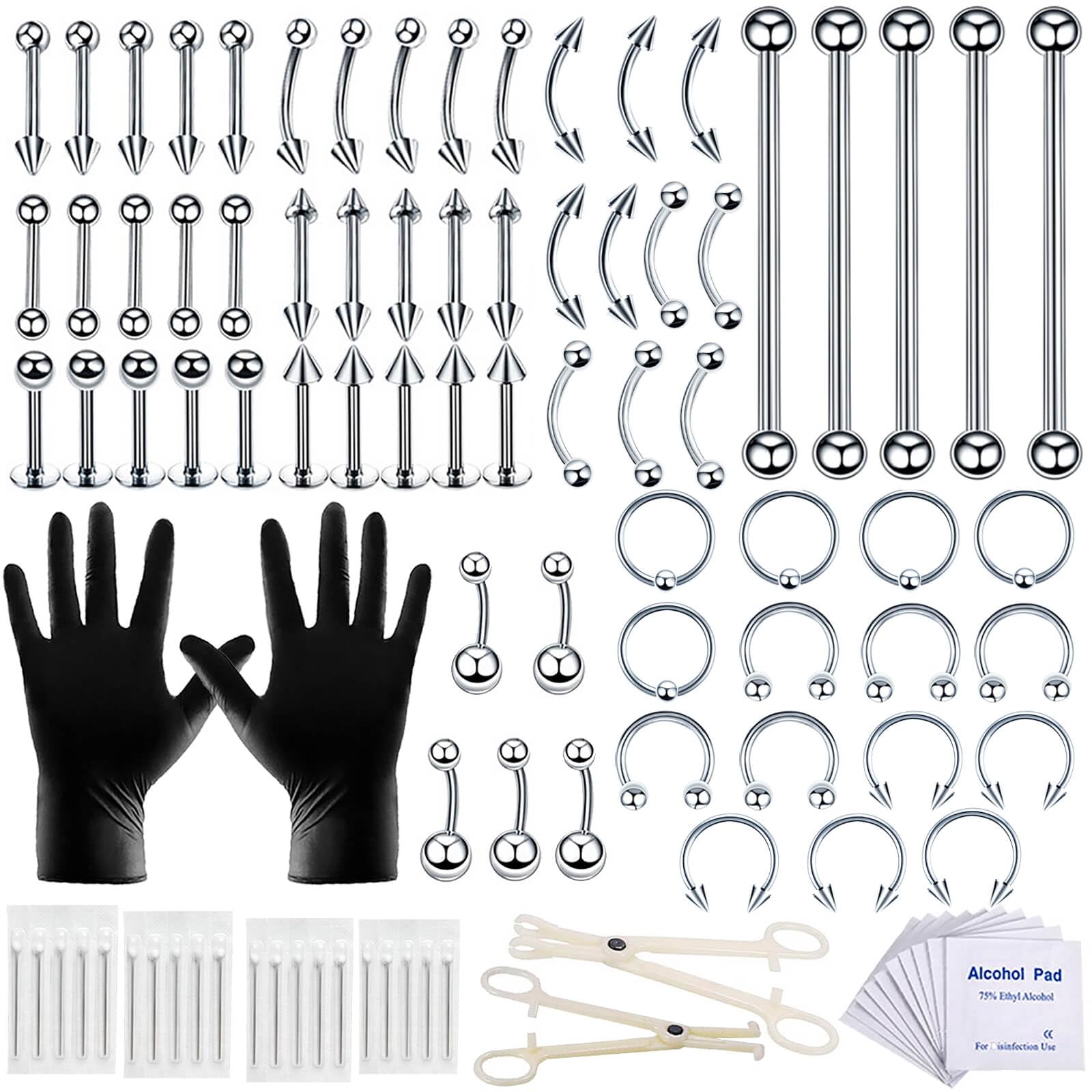 - Complete Professional Piercing Kit: This value pack includes 100 pieces of high-quality piercing jewelry and tools to meet all your body piercing needs.
