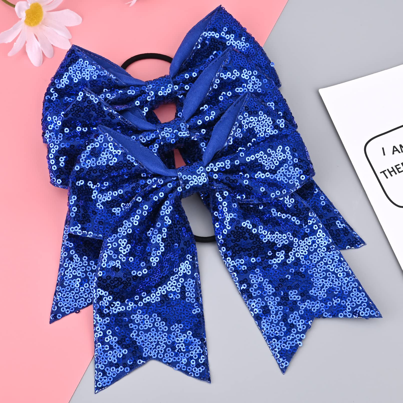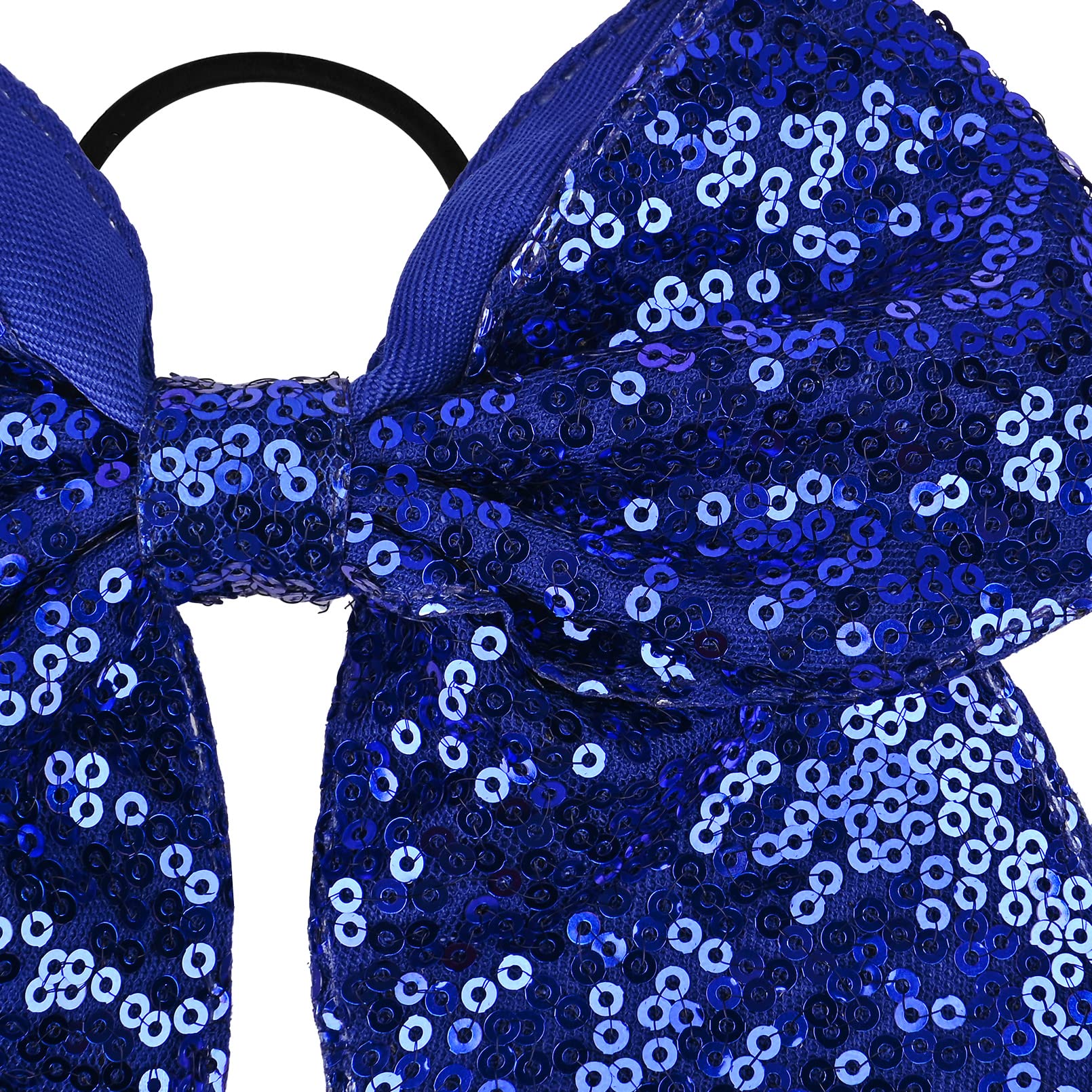Details: AILEAM'S Large glitter cheer bows with a comfortable elastic ponytail holder are sparkly and will get you noticed on the field or competition floor!Budget friendly and a great option for cheer camp, practice, or every day use.
