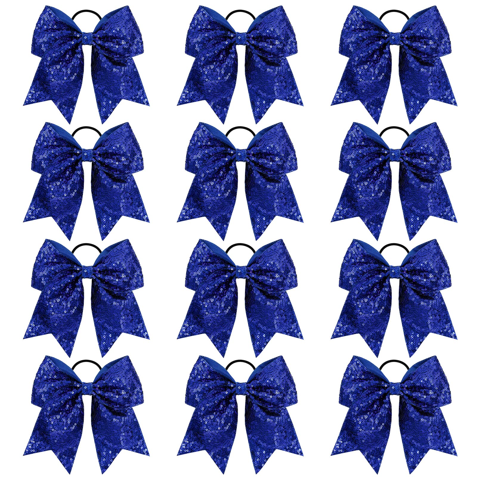 - ⭐CHEER BOW SIZE-- 12PCS glitter cheer bows are made with 3' quality grosgrain ribbon secured to a comfortable elastic ponytail holder and measured approximately 8' across.
