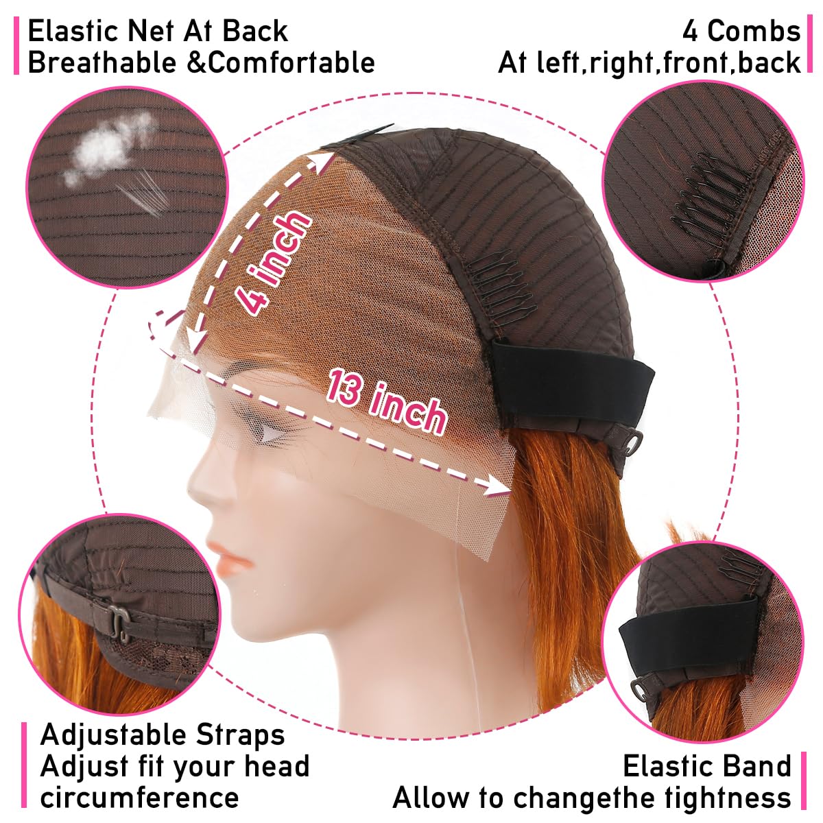 - Frontal Bob Wigs Human Hair Cap Size:Dark Bob Wig Human Hair Average Cap Size 21.5-22.5 Inch With Adjustable Straps And 4 Combs,It Can Match Most People Perfectly,You Will Feel Like Your Own Hair.Ginger Orange Lace Front Wigs Human Hair Elastic Bands Allows To Change The Tightness To Fit Your Head Circumference.
