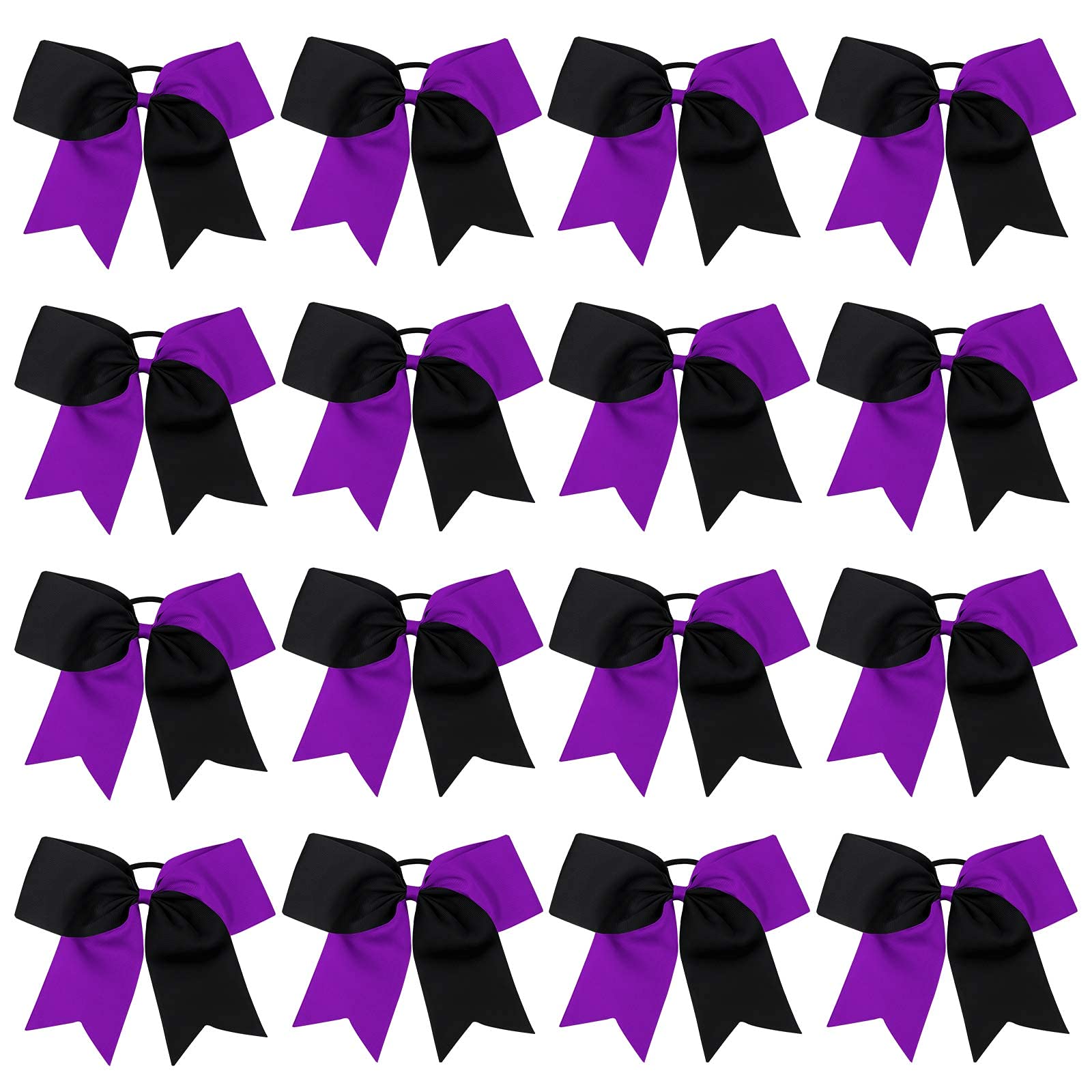16PCS 8" Large Cheer Hair Bows Ponytail Holder Elastic Band Handmade for Cheerleading Teen Girls College Sports (Black/Purple, 16 Count (Pack of 1))