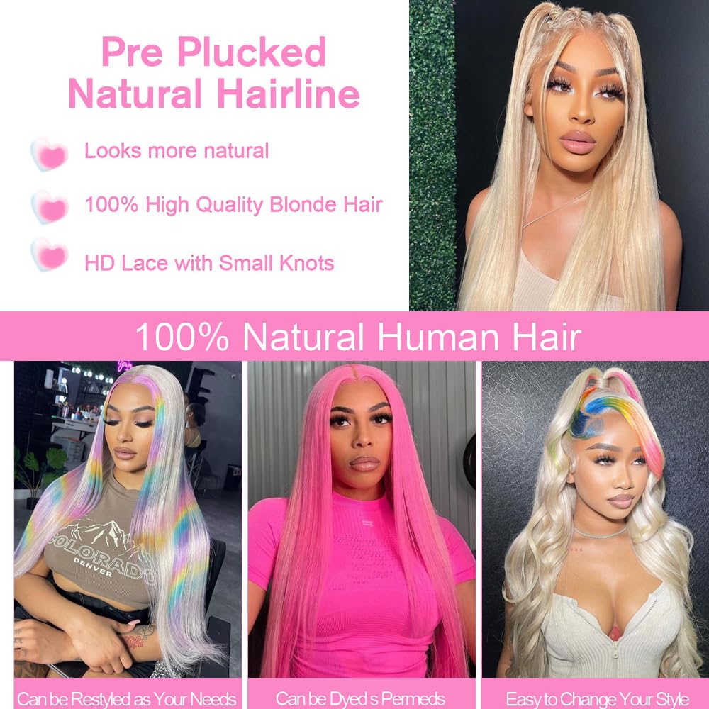 - Blonde Lace Front Wigs Human Hair Advantage: 613 hd lace frontal wig is invisible, soft, breathable and comfortable. can be dyed, permed, bleached and restyled as your needs, so you don’t worry the blonde wig can’t be reusable. The blonde lace frontal wigs human hair will make you shine in the crowd, must be your best choice!