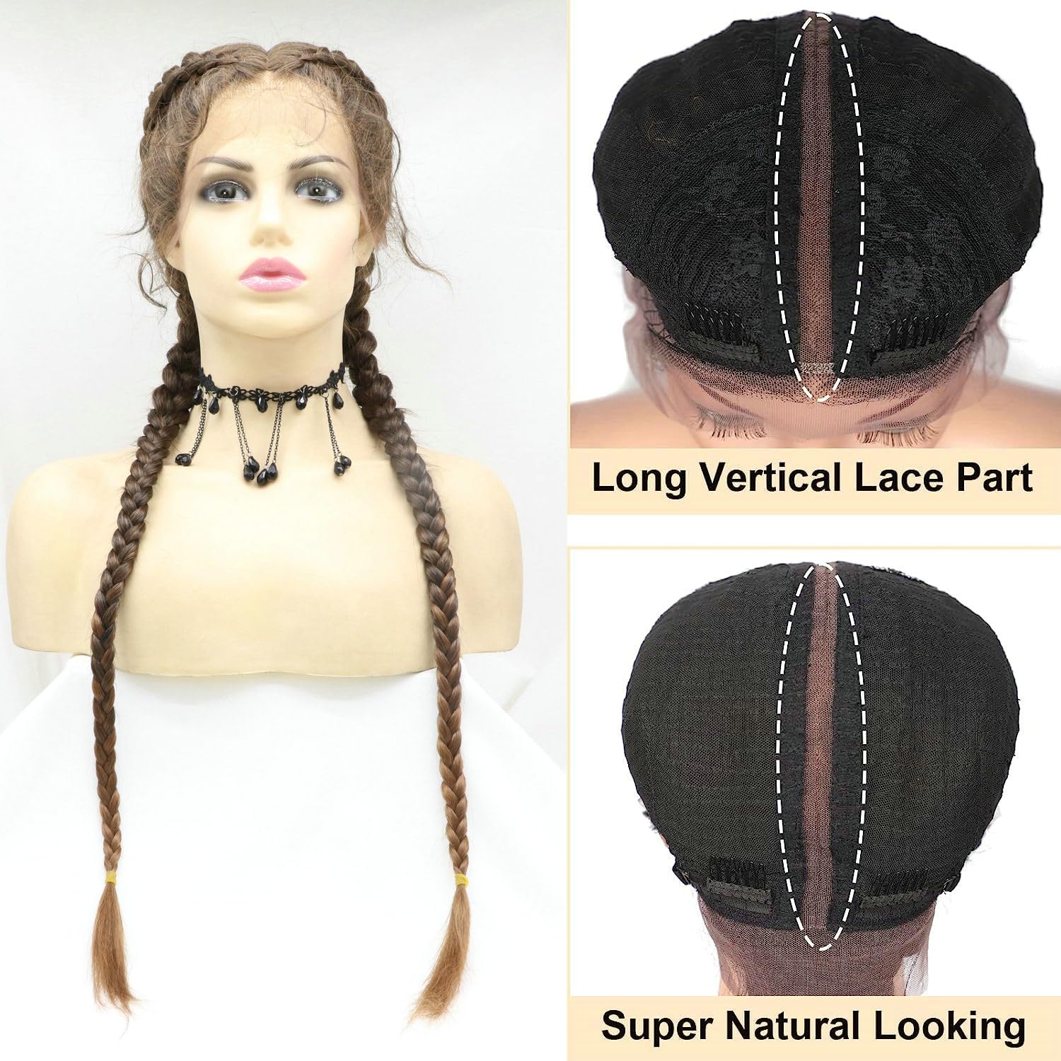 Details: 1B/30 Mixed Brown Blonde Double Braided Wigs with Baby Hair Ombre Brown Synthetic Lace Front Wigs for Women Long Synthetic Lace Frontal Large Dutch Box Braided Wigs Daily Cosplay Party Use