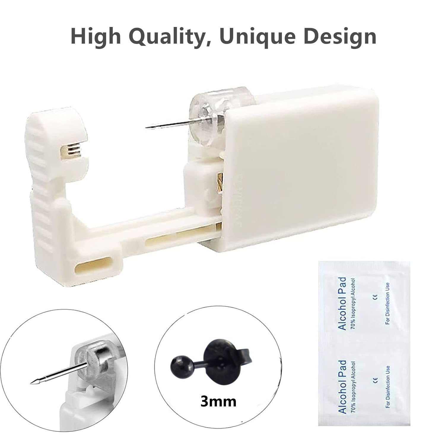 - 【Professional Ear Piercing Kit】 Our 2-Piece Ear Piercing Kit includes a 3mm silver ear piercing gun and a pair of replaceable dart earrings. Perfect for home or professional use.