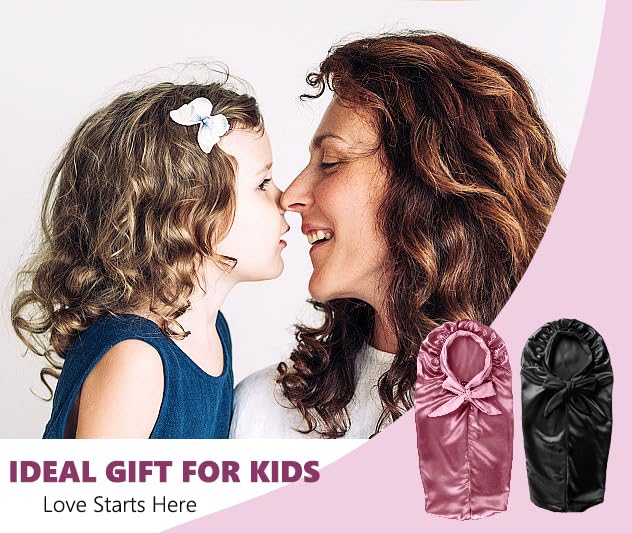 - Kids Satin Hair Bonnet for Sleeping to Protect Hair: Our long satin bonnet is made of premium soft satin,it's breathable,lightweight,skin-friendly.It can well prevent the hair from tangling,frizz while sleep.Sleeping in kids silk bonnet,It helps to keep hair hydrated,retain hairstyles,reduce the split ends and prevent facial breakouts