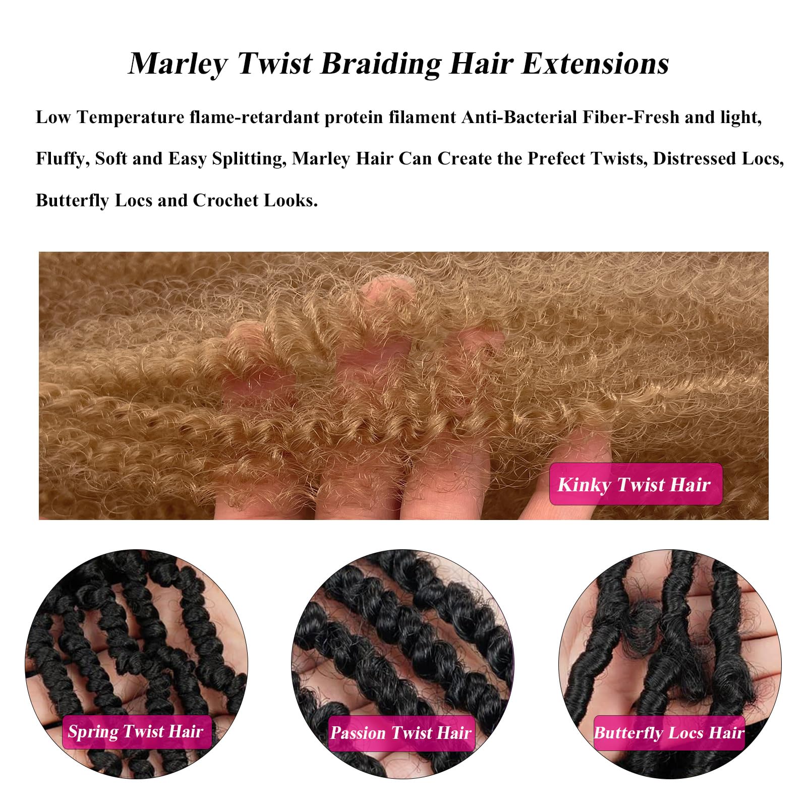 - Marley Twist Braiding Hair: Soft & Lightweight, No Smell, Easy to Separate & Install, You Can Stretch Springy Afro Twist Hair Out Just Like a Real Kinky Twist Hair And It Will Spring Back Twist Up Hair Just Like Natural Hair.