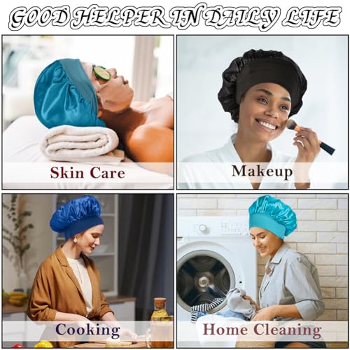 - Multifunctional Satin Bonnet: Not only as a hair bonnet for sleeping but also as a good helper in your life when you wash your face, brush your teeth or apply a mask after taking a bath and other preparations before going to bed. Especially when you're skincare, wearing a shower cap can help keep your hair squeaky clean without worrying about skincare balms getting tangled in your hair