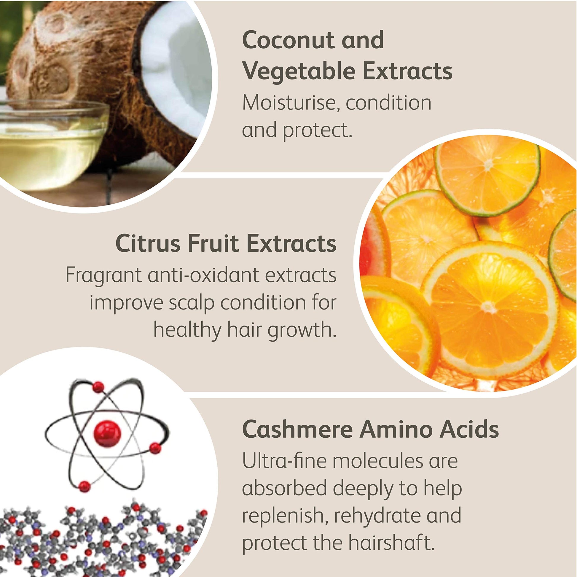 - 3'''More Inches Cashmere Protein Volumizing Conditioner repairs and strengthens your hair, boosting volume from within