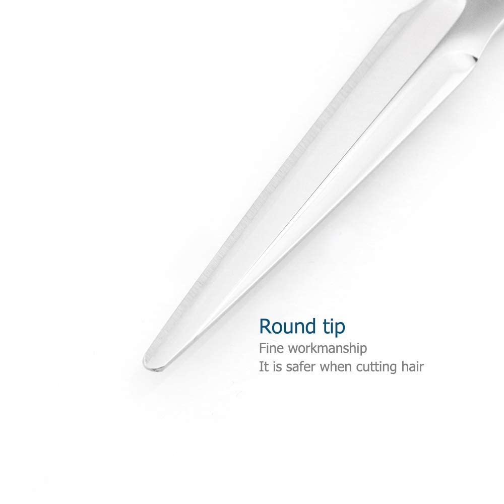 Details: 5.5 INCH hair cutting scissors,professional level barber scissors 5.5 INCH hair thinning scissors,V shape teeth,thinning rate 25%-30% Convex blades,Japan steel,very sharp and keep sharp during long working life Well-proportioned honed edge line and slide way,very well cutting balance Both hair scissors can be used at hair salon.KINSARO-Only design and produce professional hair scissors,very sharp and long working life