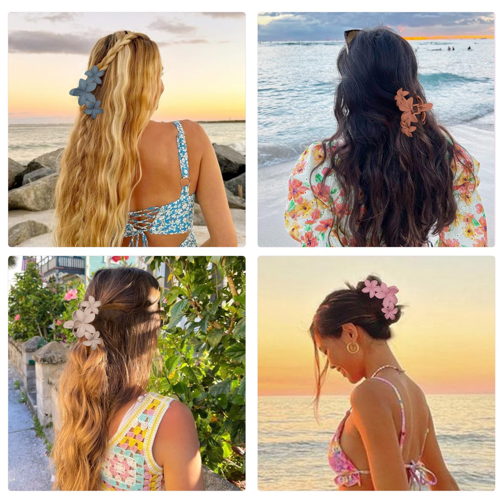 - 🌸Wide Applications: Our hawaiian flower hair clips are suitable for all hair types, whatever long, straight, curly, thin hair or thick hair. This set hair claw clips also could use as daily wearing, party, travel, shower, beach vacation or you may use it when you doing sport, makeup, home cleaning.