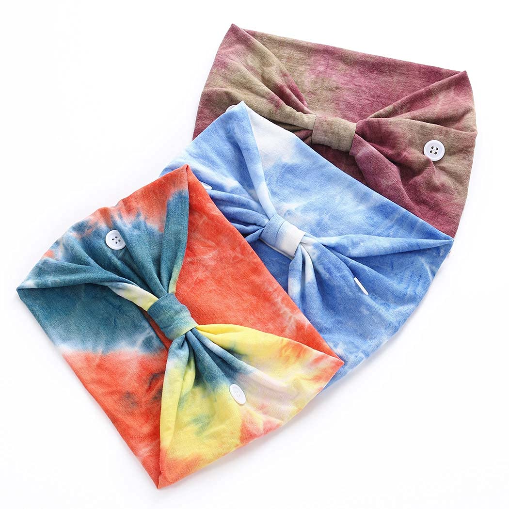 Aceorna Boho Button Headband Wide Knotted Hairbands Stretch Nurse Headbands Women Head Wraps Workout Ear Saver Hair Band Leopard Turban Headwear Yoga Hair Accessories for Women 3 Pcs (Set G)