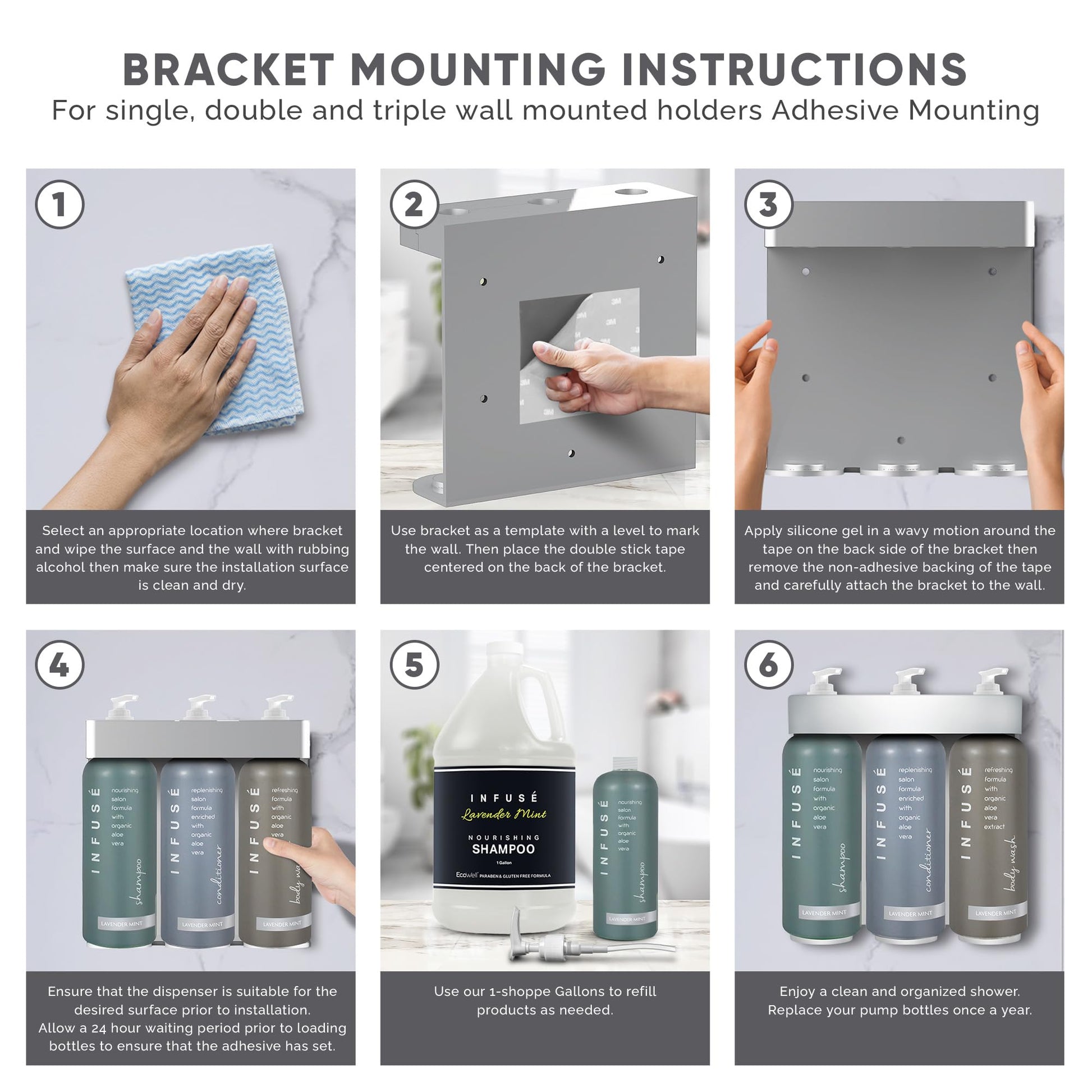 Acquavera Triple Bracket (Silver) with Infuse Lavender Mint Shampoo, Conditioner and Body Wash