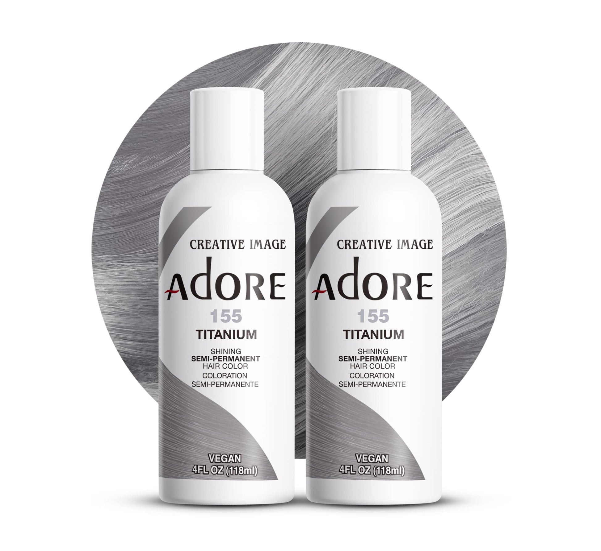 Adore Semi Permanent Hair Color - Vegan and Cruelty-Free Silver Hair Dye - 4 Fl Oz - 155 Titanium (Pack of 2)