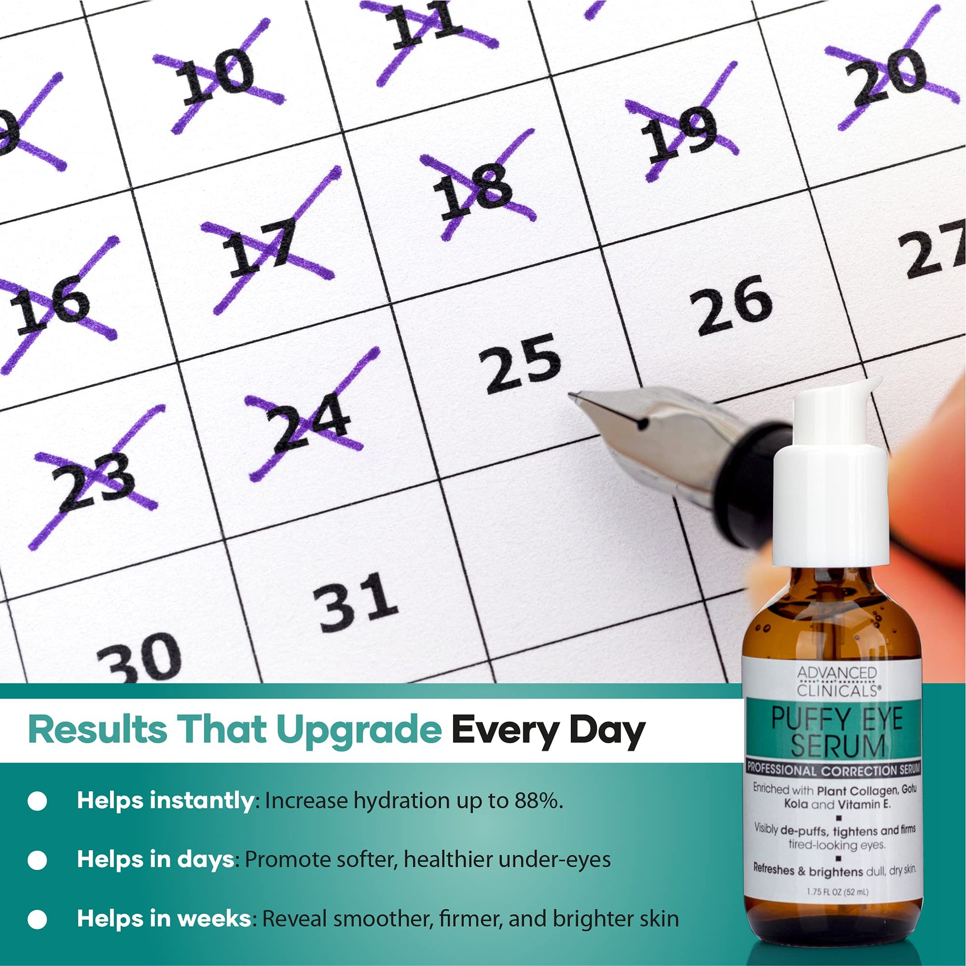 - Our Promise – Rely on Advanced Clinicals’ beauty products to deliver instant results. We craft your Puffy Eye Serum with quality ingredients and clinical testing for your assurance and enjoyment.