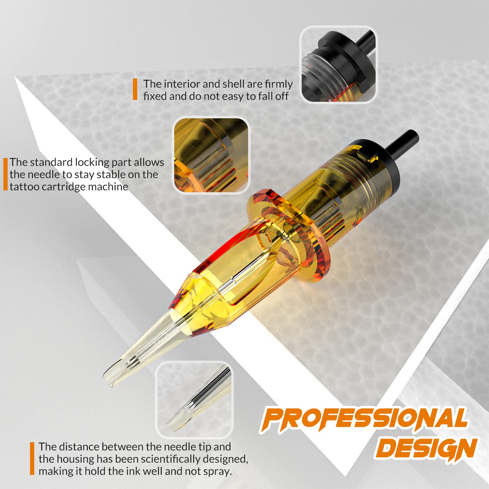 - 🔥Our cartridge needles feature a unique system that prevents backflow, ensuring a clean work environment. Each tattoo cartridge needle is individually packaged, ensuring that they are clean and ready to use right out of the box.