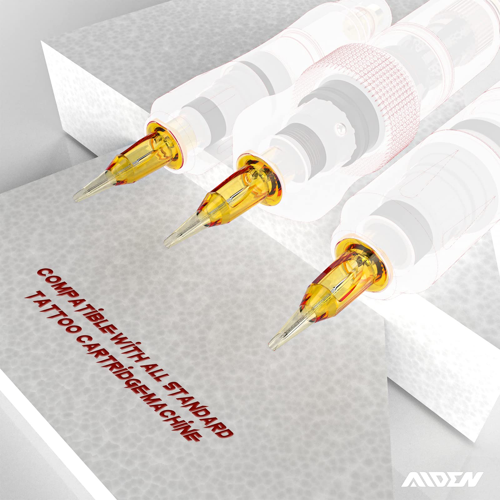- 🔥[Choose the sizes you need]AIDEN provides tattoo cartridge needles in a variety of configurations including round liners, round shaders, magnums, and round magnums, allowing you to create a wide range of tattoo styles and designs. ▶This option will come with 20pcs 1209RLLT tattoo needles.