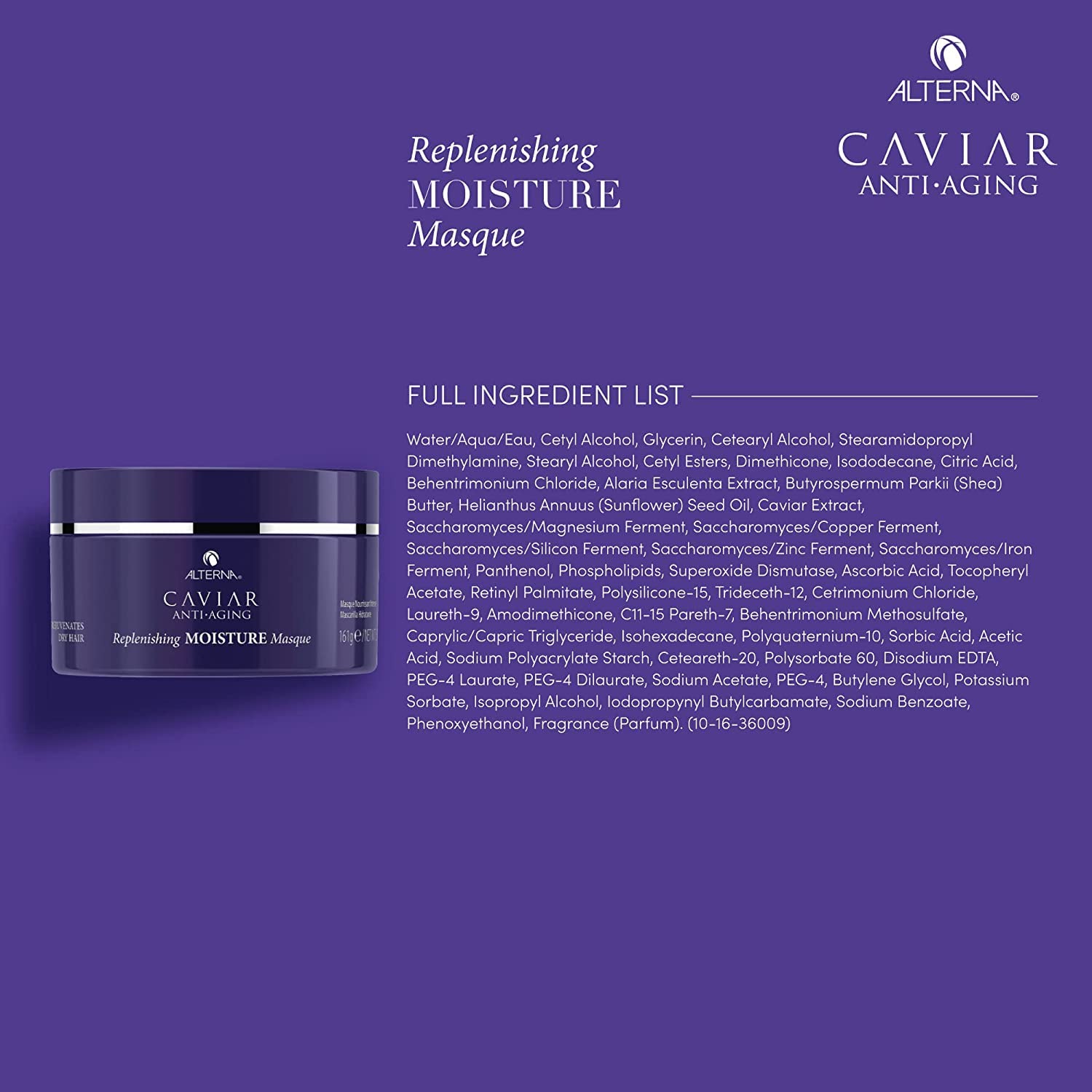 CAVIAR Anti-Aging Replenishing Moisture Masque is an intensive moisturizing treatment that replenishes moisture-starved strands, leaving hair smooth, silky and youthfully restored. This once-a-week treatment provides an exceptional dose of moisture to completely rejuvenate dry, coarse, and damaged hair. Formulated with our signature CAVIAR Extract and Sea Silk, the formula is ideal for effectively revitalizing and reconstructing over-processed hair, while maintaining hair's essential moisture balance.