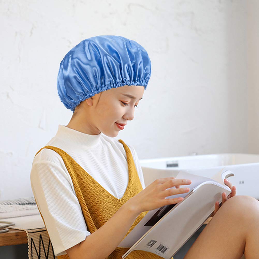 - Double Layers Waterproof - This women shower cap contains two layers, including a polyester outer layer and an EVA inner layer, which effectively keeps your hair from getting wet during showers or baths. Upgrade your shower experience.