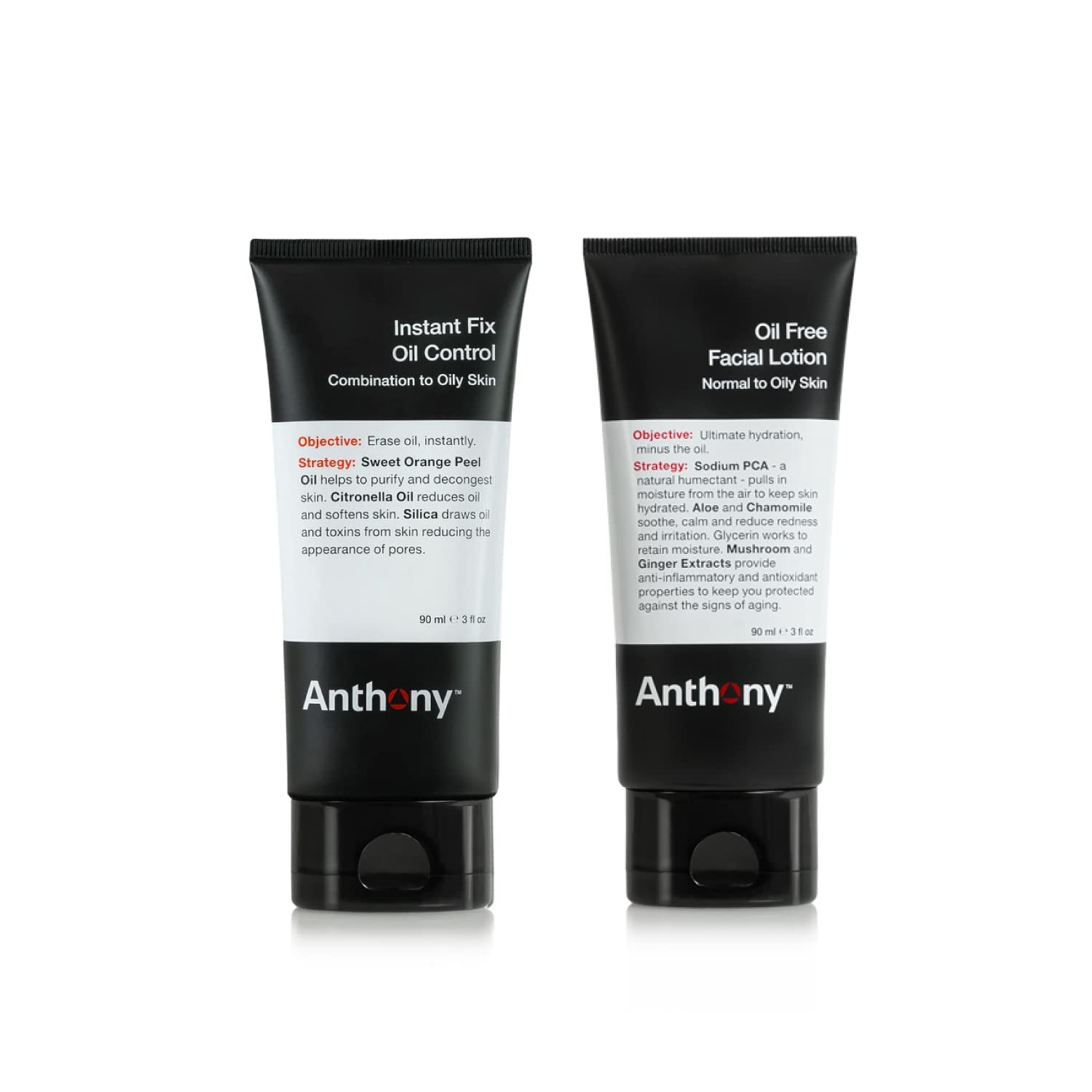 Anthony Oil Control Duo, Instant Fix Oil Control and Oil Free Facial Lotion for Men