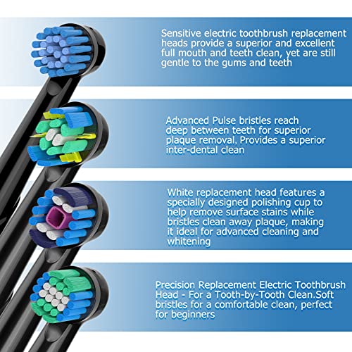 AOXGAO Toothbrush Replacement Heads Compatible with Oral B Electric Toothbrushes, Replacement Heads for Oral b Braun Pro 1000 2000 3000 500 Vitality Genius x(Black)