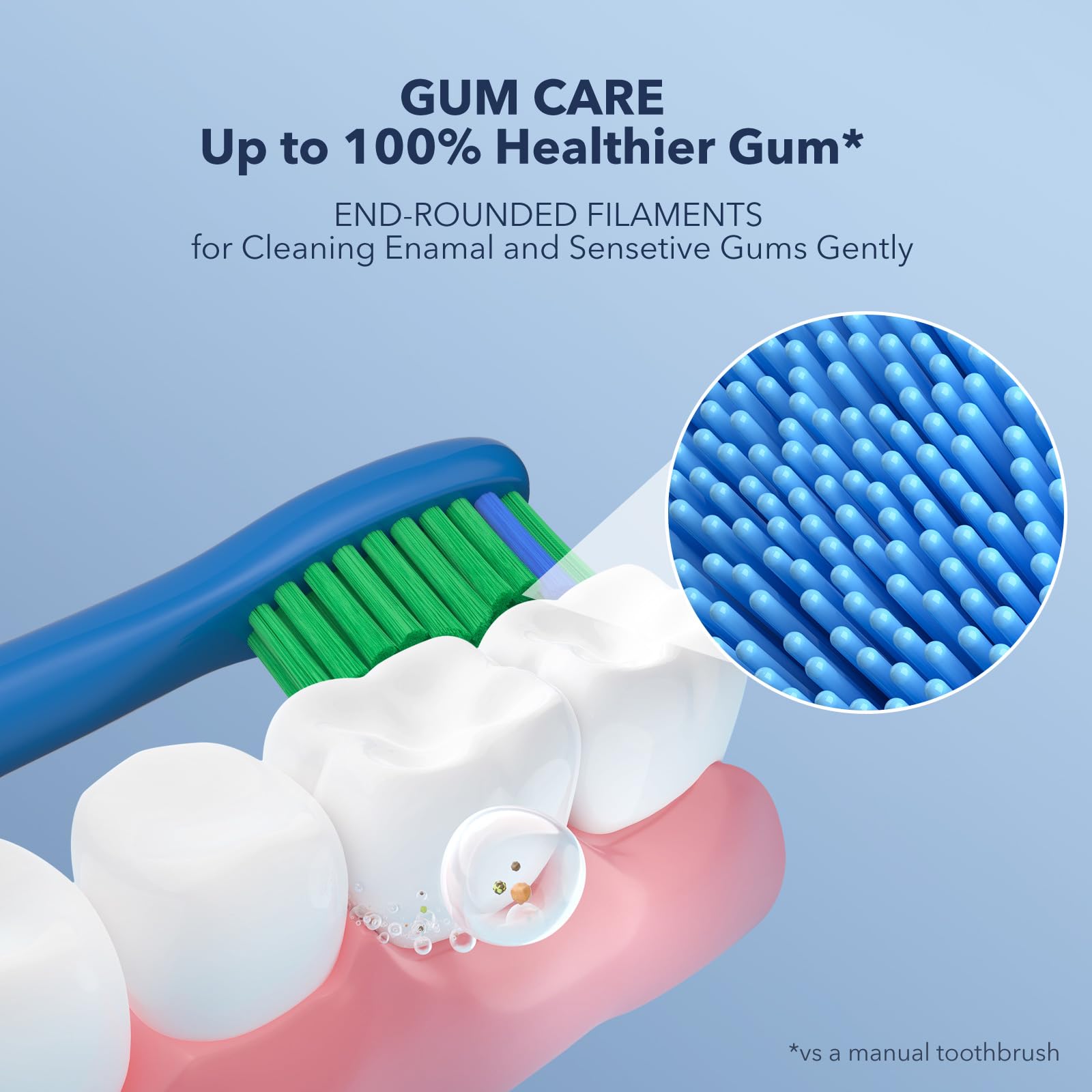 - 【'W' shape design & 4 DuPont Brush Heads】--- More comprehensive and gentle cleaning experience --- [1] Unique 'W' shape design to suit teeth surfaces and remove up to 100% more stains from hard-to-reach spots, minimize the risk of damage to gums and tooth enamel. [2] Comes with 4 replacement toothbrush heads. Each brush head lasts 3 months so 4 heads will last for around one year.【NOTICE: Blue indicator bristles fade in color to let you know when it's time to replace the brush head】