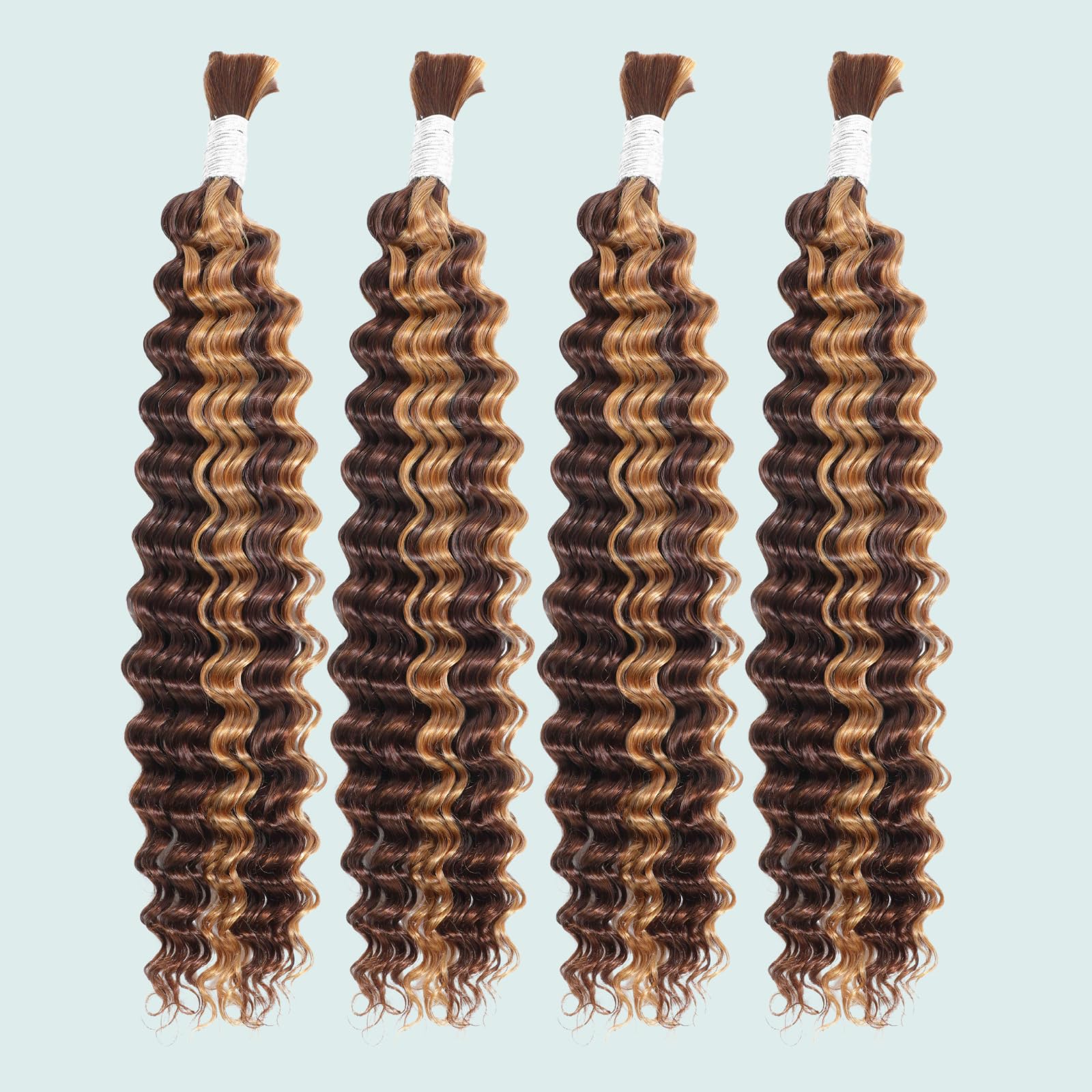 AUROO 10A Braiding Hair Deep Wave Bulk Human Hair For Braiding 24In,No Weft Honey Blonde Highlight Ombre Bundles Curly Micro Braiding Hair For Boho Knotless Braids 100% Virgin Human Braiding Hair 100g
