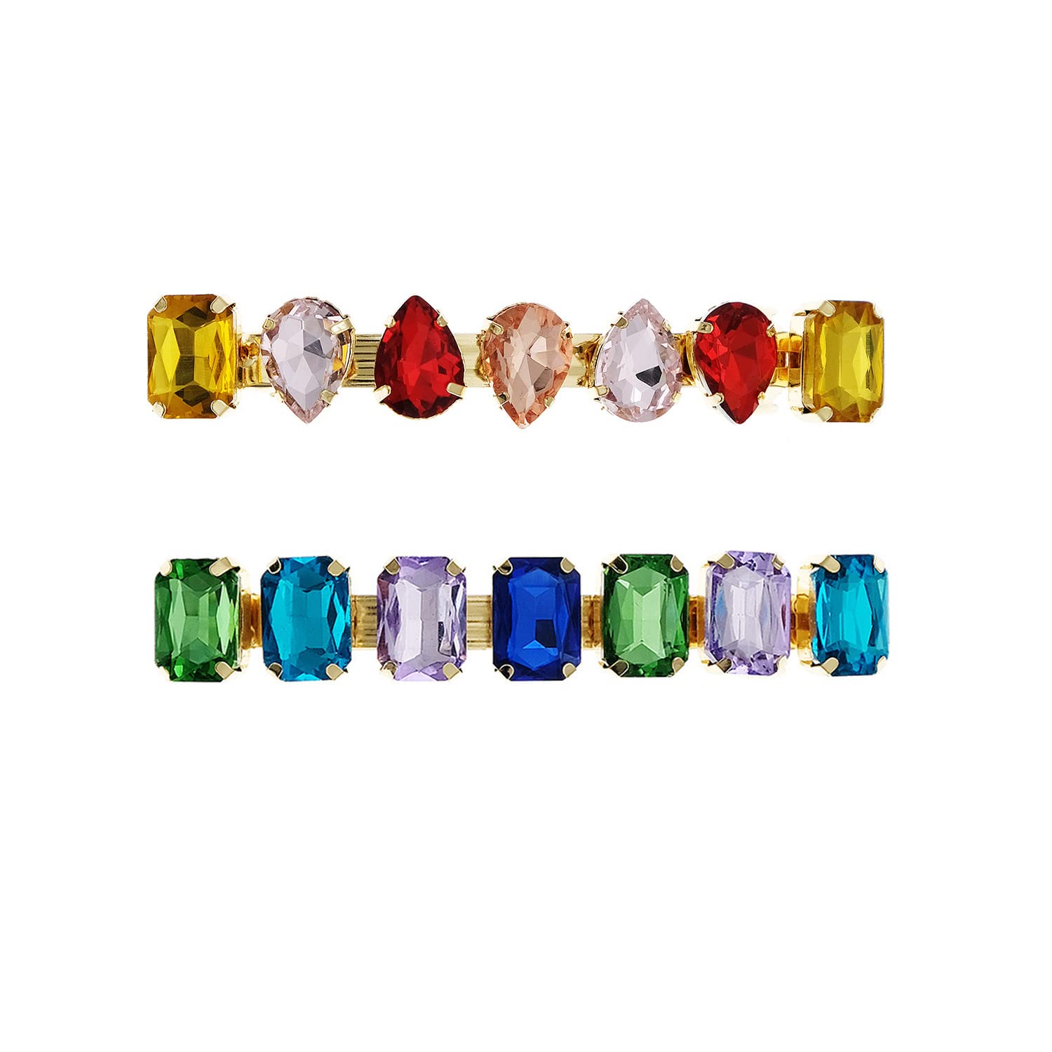 Austrian Crystal Hair Barrettes, 2Pcs Rhinestones Hair Clips, Colourful Sparkly Hairgrip Hair Headwear Accessories for Women Girls