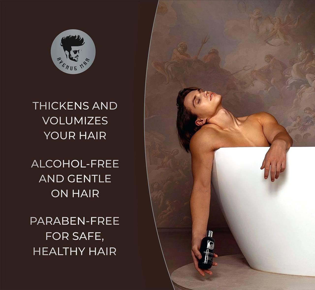 Details: Looking for hair care that’s natural and healthy? Avenue Man hair products are specifically designed to make handsome, MASCULINE hairstyles for men with short, medium, or long hair that hold all day long and create a winning look. Our sulfate free conditioner will improve your hair in five ways! Here’s what you can expect: Hassle-free hair combing and brushing: Featuring powerful essential and carrier oils, our detangling hair conditioner will reduce the friction between strands of hair leaving your hair smooth and manageable. Intensive hydration and rejuvenation: Thanks to our nutrient-rich formula that contains antioxidants, vitamins, and herbs, our hair conditioner for men and women will effectively hydrate, nourish and repair your hair from the roots to the ends. Improved hair appearance: Our conditioner for men and women will help smooth the cuticle and replace moisture resulting in a thicker appearance, excellent body, and a vibrant shine while keeping both your hair and scalp healthy. Superior hair protection: This conditioner is alcohol, silicone, sulfates, and paraben free. It prevents hair damage and provides a powerful thermal defense for men and women who regularly use hair dryers to style. In addition, it targets dandruff and itchiness, while unclogging pores to stimulate hair growth. Made in the USA: Created and Manufactured in California by natural hair product specialists with years of experience, Avenue Man Volumizing Conditioner comes in MASCULINE, efficiently designed packaging created for hair salons and for the general public. This great hair product will help you get your dream job, succeed in business, attract your crush, or anything else you want to achieve. Order our Volumizing Conditioner NOW and enjoy a perfect hairstyle all day long.