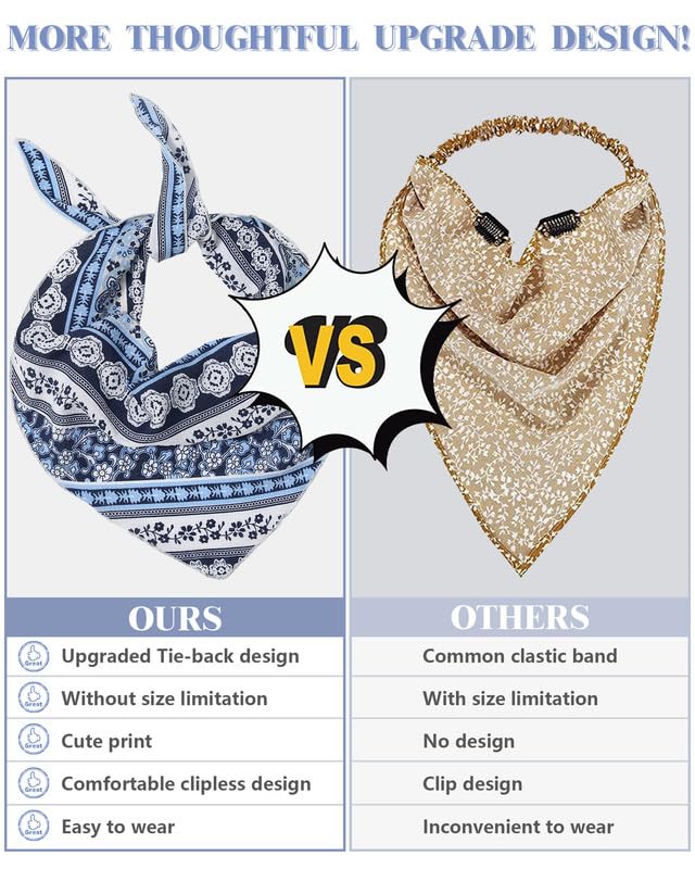 - TIE-BACK TRIANGLE HEAD SCARF FITS MOST PEOPLE: The head bandana for women's hair is a tie-back design, so you can tie bandanas for hair on as often as you like. It fits most head circumferences and meets most hairstyling requirements