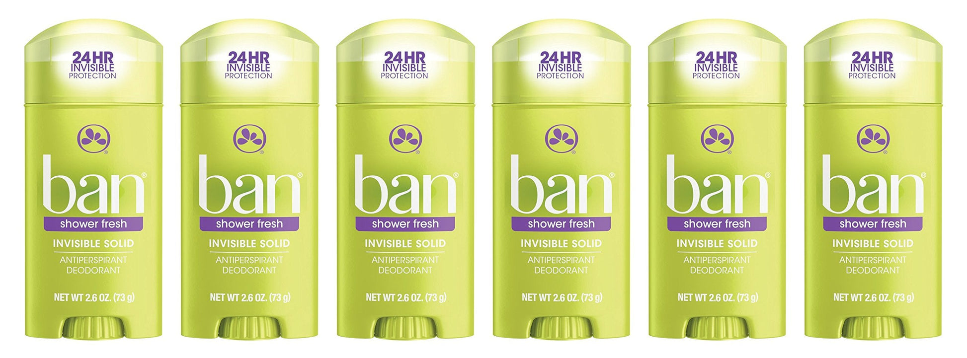 Ban Antiperspirant Deodorant for Women and Men, Invisible Solid, Shower Fresh, 2.60 Ounce (Pack of 6)
