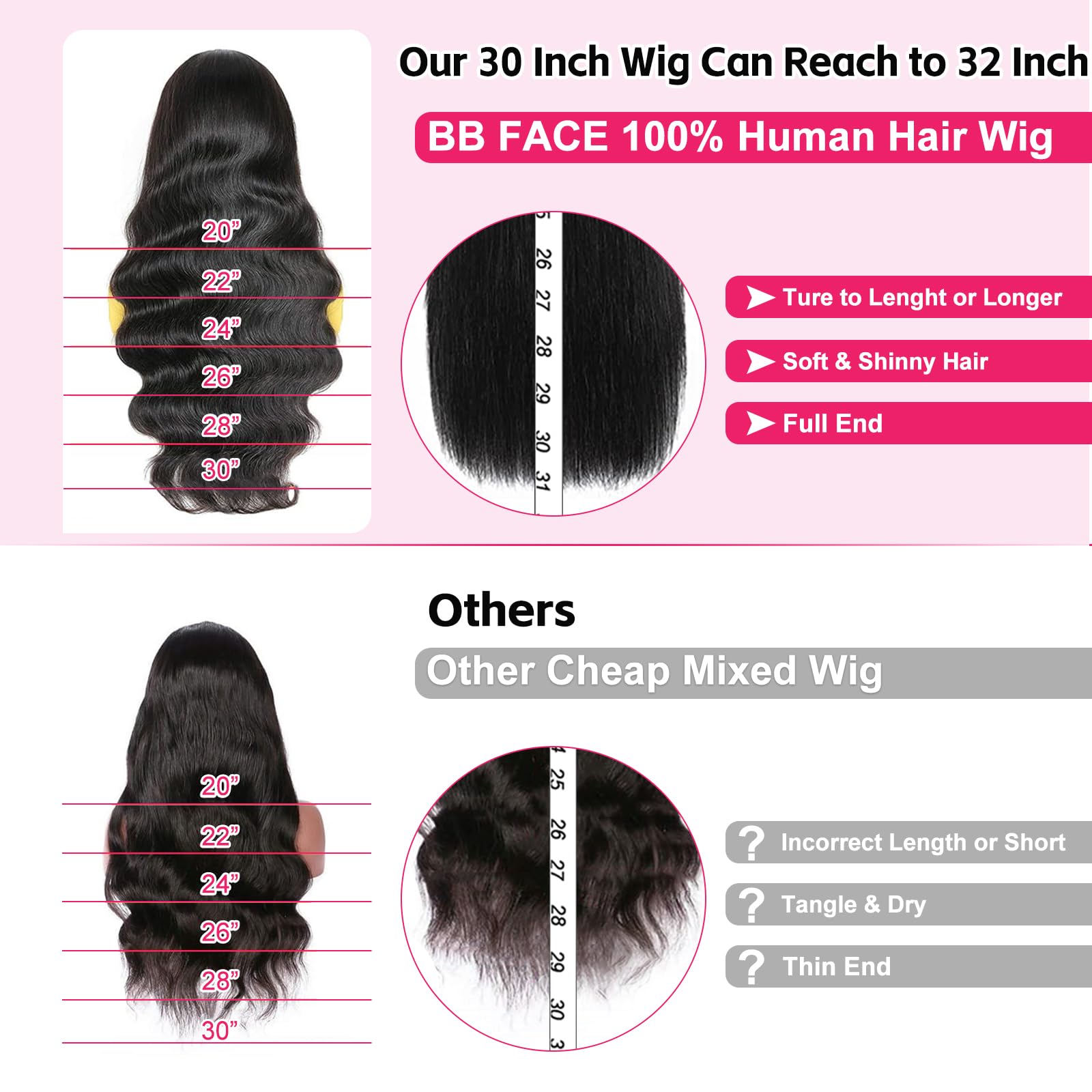 - 【HD Lace Front Wigs Human Hair Quality】: Body Wave 13x6 Lace Front Wigs Human Hair Pre Plucked Natural Hairline, True to Length and Weight. Can Be Dyed & Bleached, Straightened and Restyled, High Ponytail, Durable, Reusable, Styled As Your Own Hair.