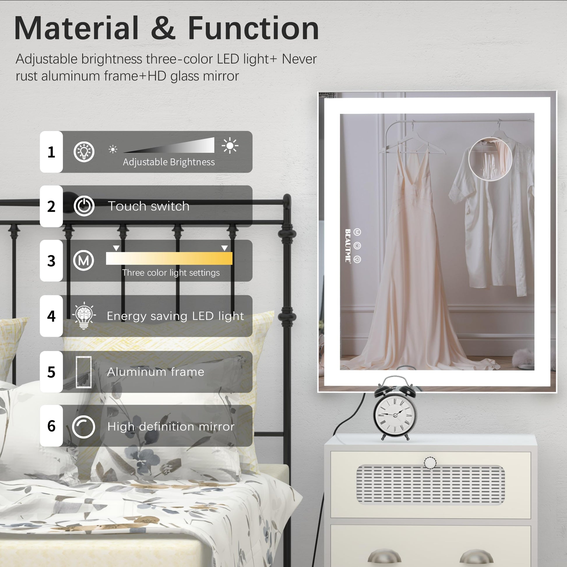 Details: BEAUTME Vanity Mirror,Tabletop Makeup Mirror,Hollywood Mirror,LED Bedroom Mirror with Lights,Lighted Mirror , Aluminium Frame,48.5×40.5cm,White