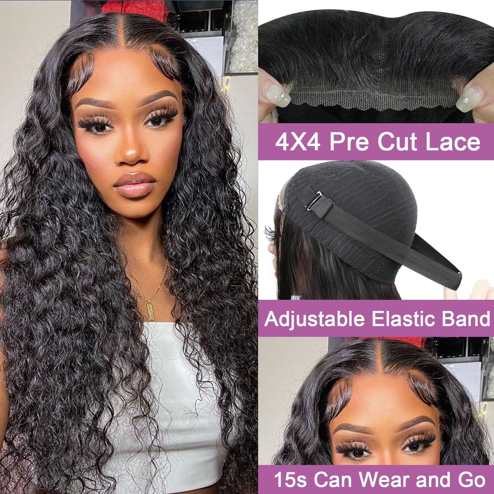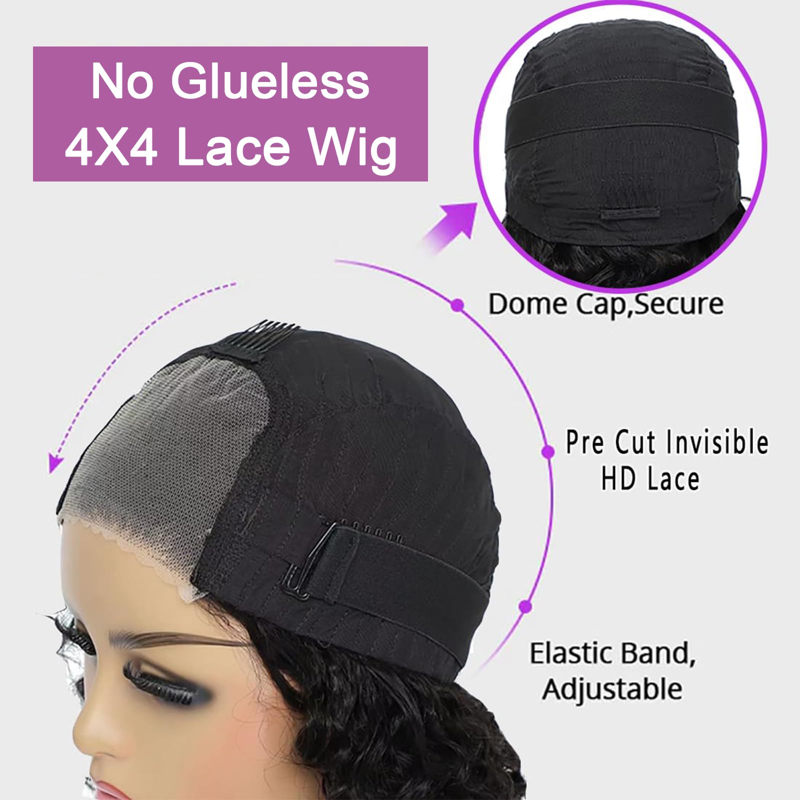 - Upgraded Glueless Wig: pre-cut lace, no need glue, can be wear with in 15s, quick and easy, friendly for the beginners.