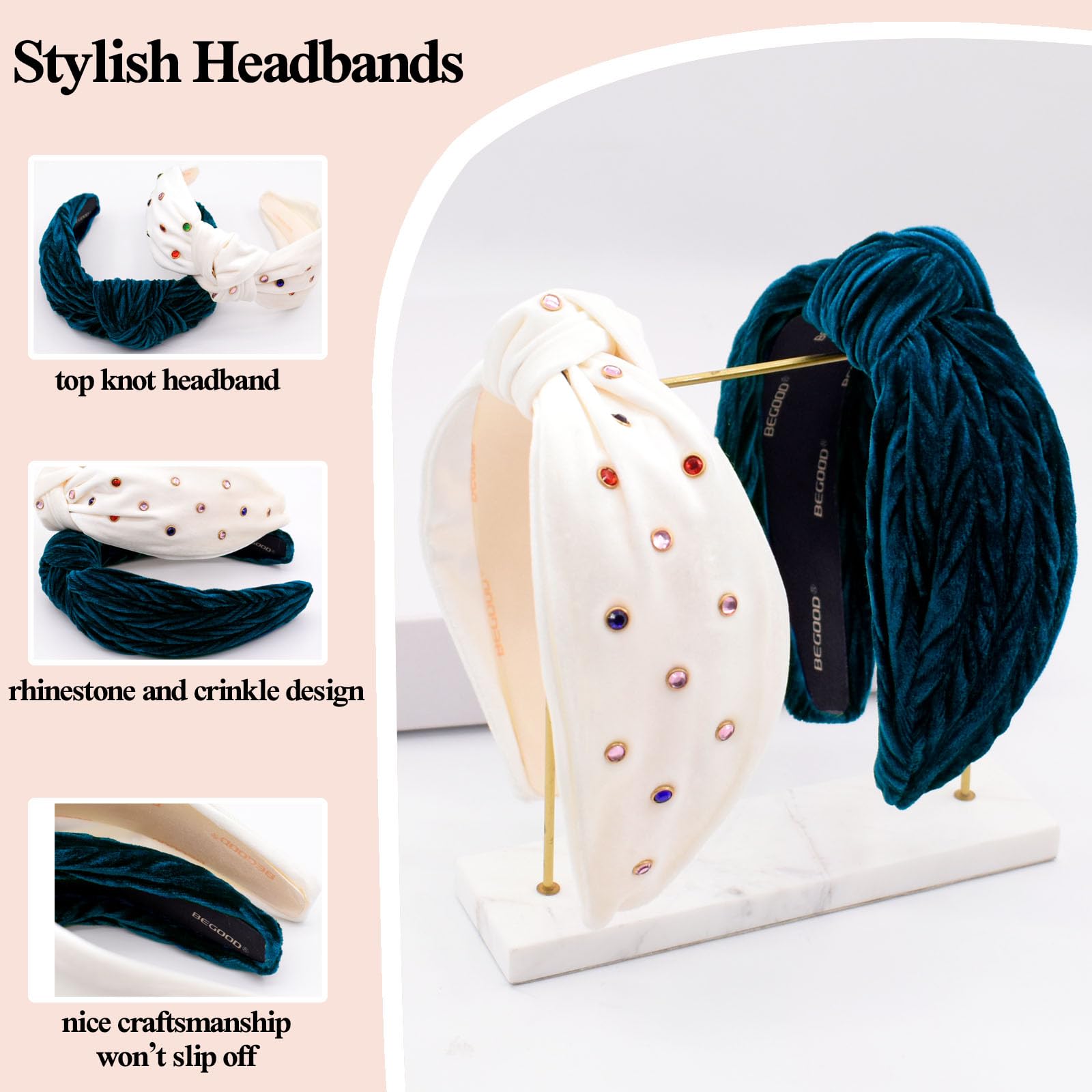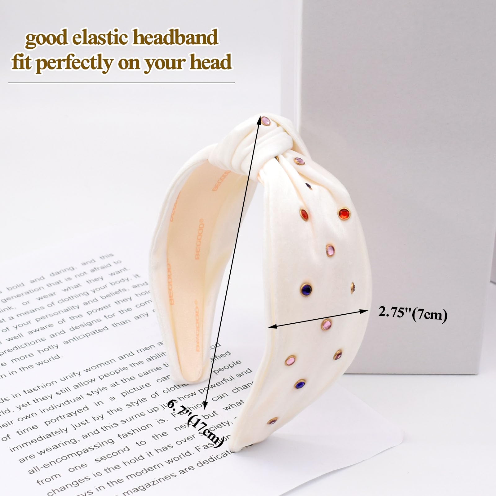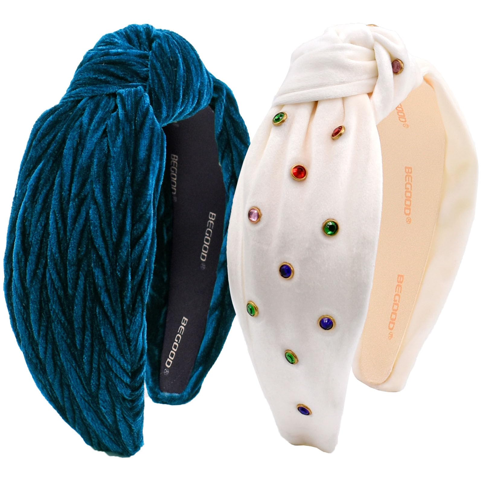 BEGOOD Headbands for Women Rhinestone Knotted Wide Headband Womens Top Knot Head Bands Fashion Hairbands Turban Hair Accessories for Girls 2Pcs