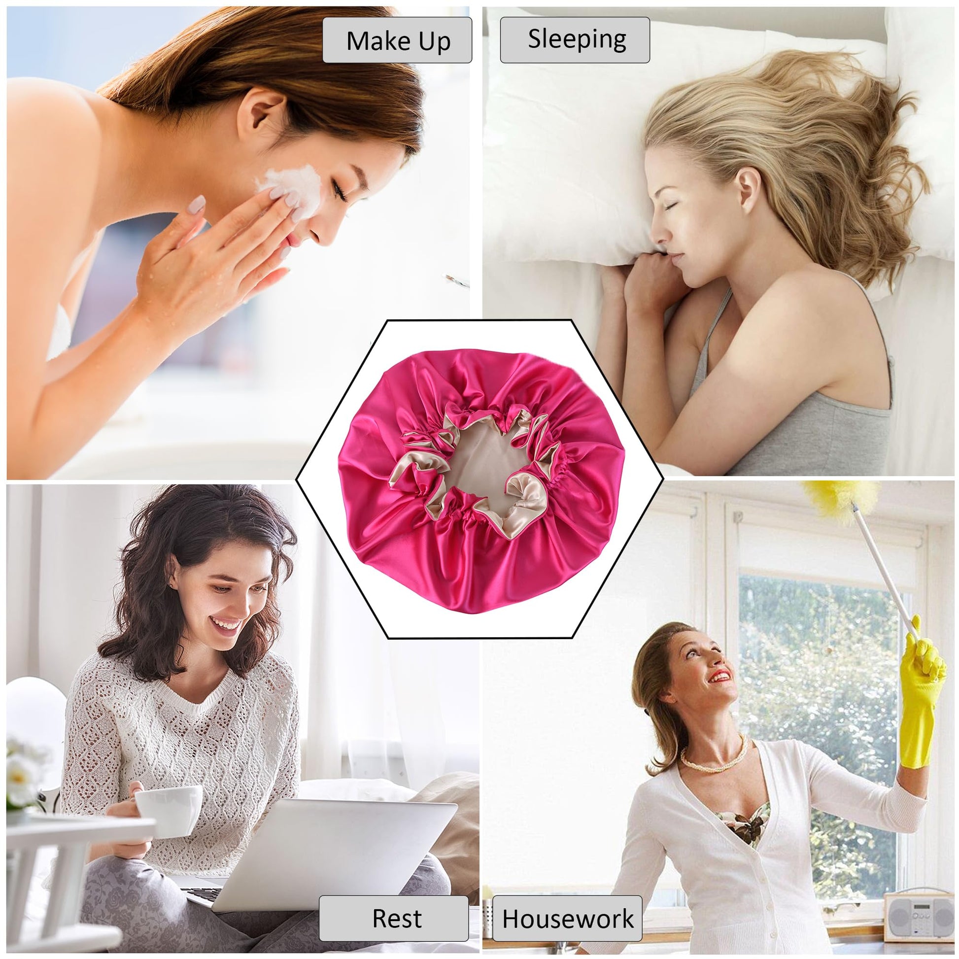 Beutyme Silk Bonnet for Sleeping Satin Bonnets Double Layer Reversible Hair Cap Bonnet for Women Long Curly Braid Hair (Hot Pink)