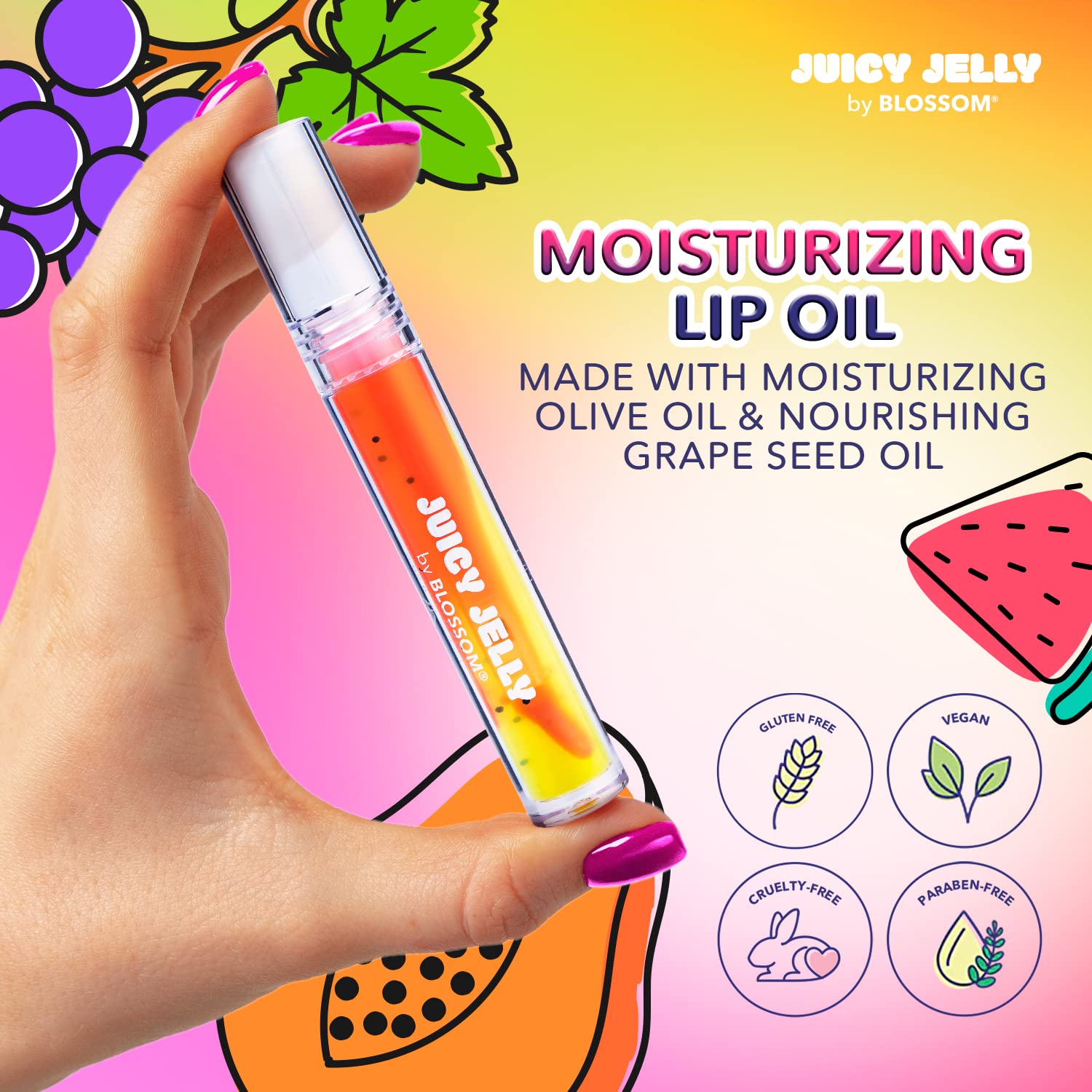 - JUICY JELLY NOURISHING LIP OIL: Blossom introduces their new line of fun, fruity lip oils, inspired by mouthwatering fruit, picked at the peak of ripeness. Our carefully crafted products deliver an element of fun and individuality for every person, every day, every journey
