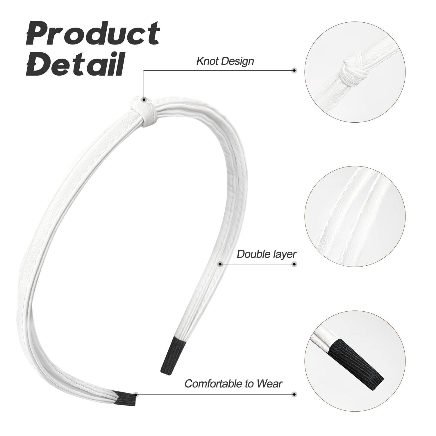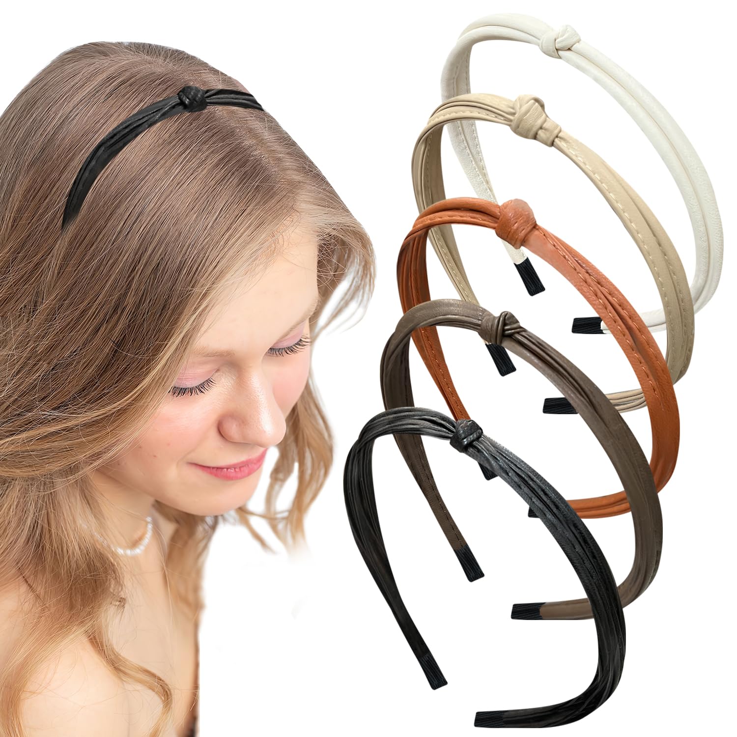 Bmobuo Headbands 5Pcs Thin Leather Hair Bands for Women Knotted Headband for Women's Hair Cute Fashion Accessories, Black Brown White Khaki Orange Dark Brown