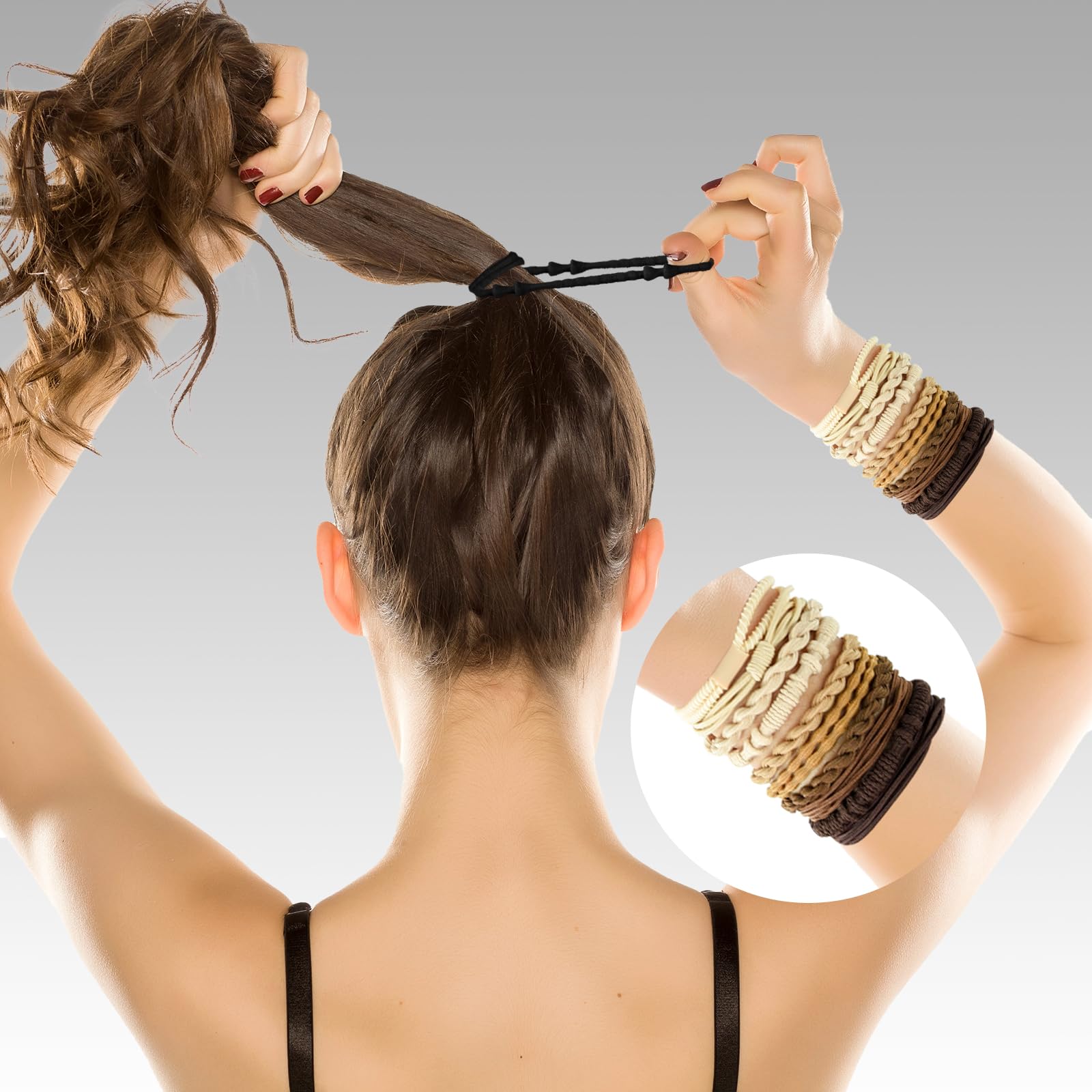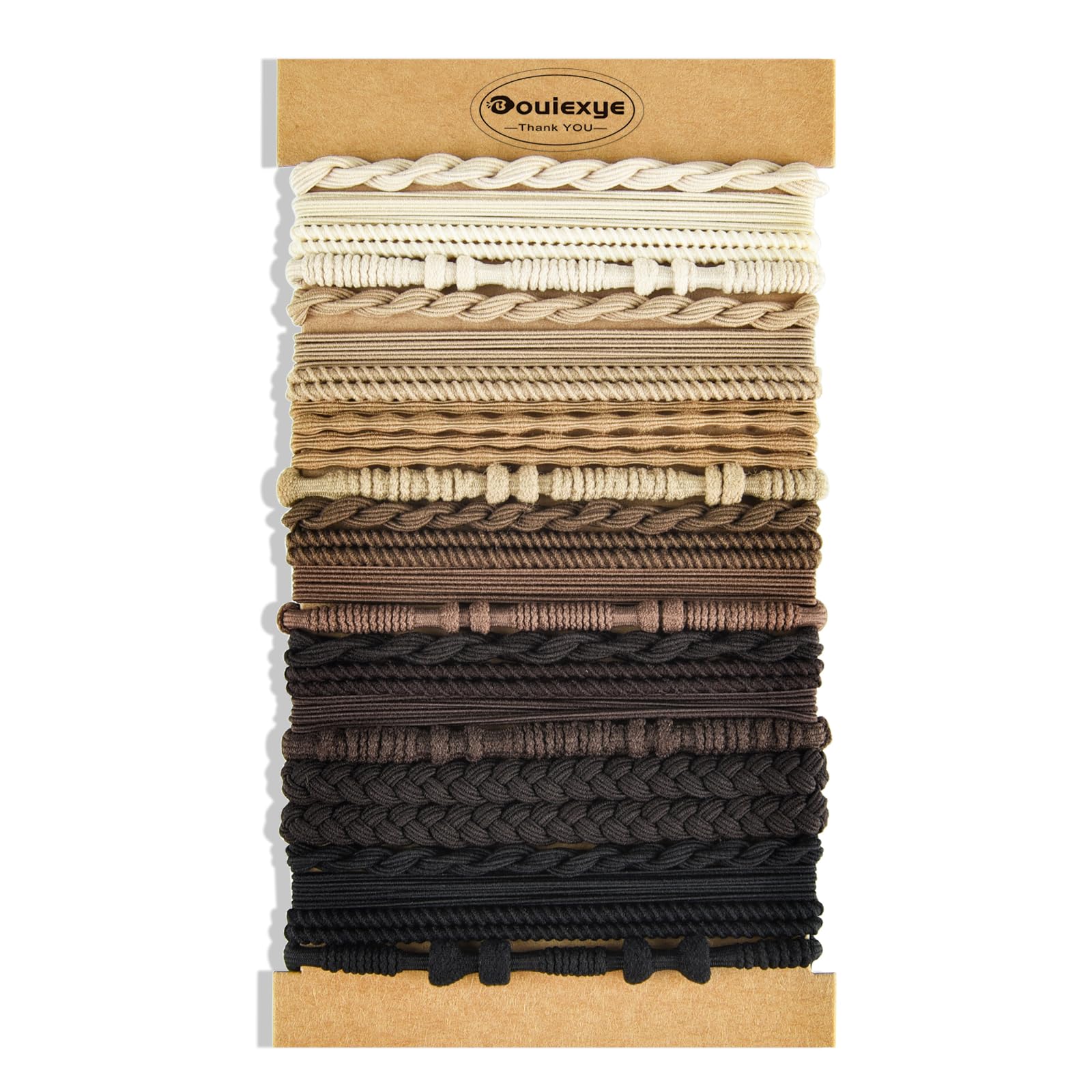 Bouiexye Hair Ties Bracelets for Women, 24PCS Boho Hair Accessories, Hair Ties for Thick Thin Hair Medium Long Hair, No Damage, Retro B
