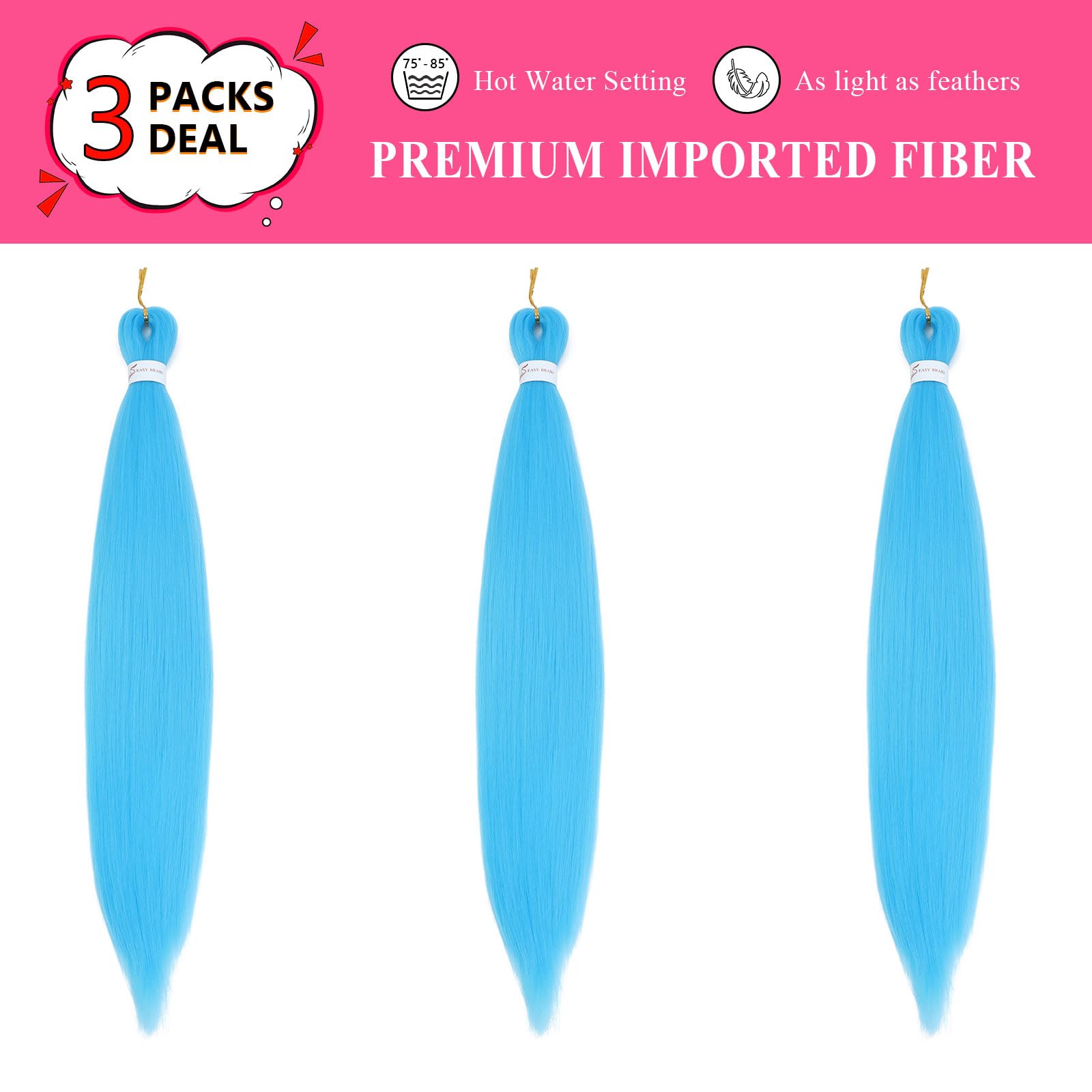Braiding Hair Pre Stretched 26 Inch Sky Blue Braiding Hair Extensions for Braids 3Packs Long Braids Crochet Hair for Braiding Sky Blue EZ Braids Hot Water Setting Braiding Hair