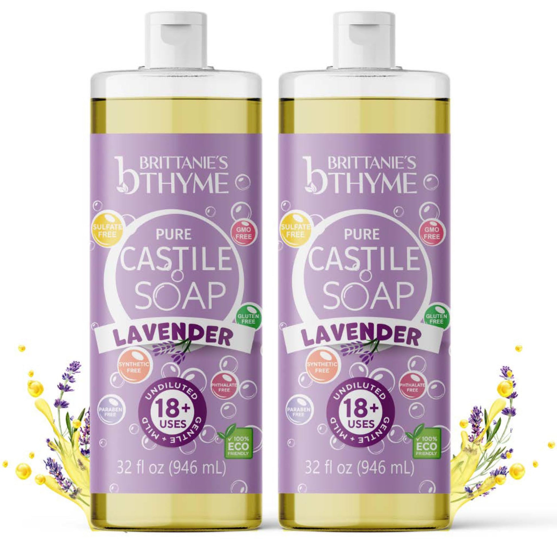 Brittanie's Thyme Pure Castile Liquid Soap Refill | For Hair & Body, Gentle and Pure, Made with Natural Luxurious Oils, Vegan & Gluten Free Non-GMO (Lavender, 32 oz (Pack of 2))