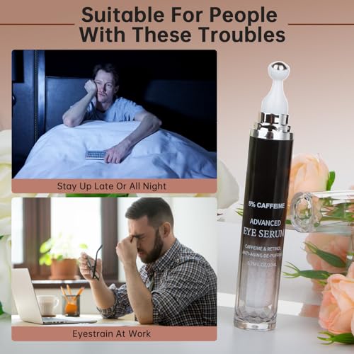 Caffeine Eye Cream for Puffiness & Dark Circles, Under Eye Cream for Puffy Eyes, Eye Bags & Wrinkles, 1 PCS Anti Aging Eye Serum with Under Eye Roller, Reduces Fine Lines & Moisturize Skin.