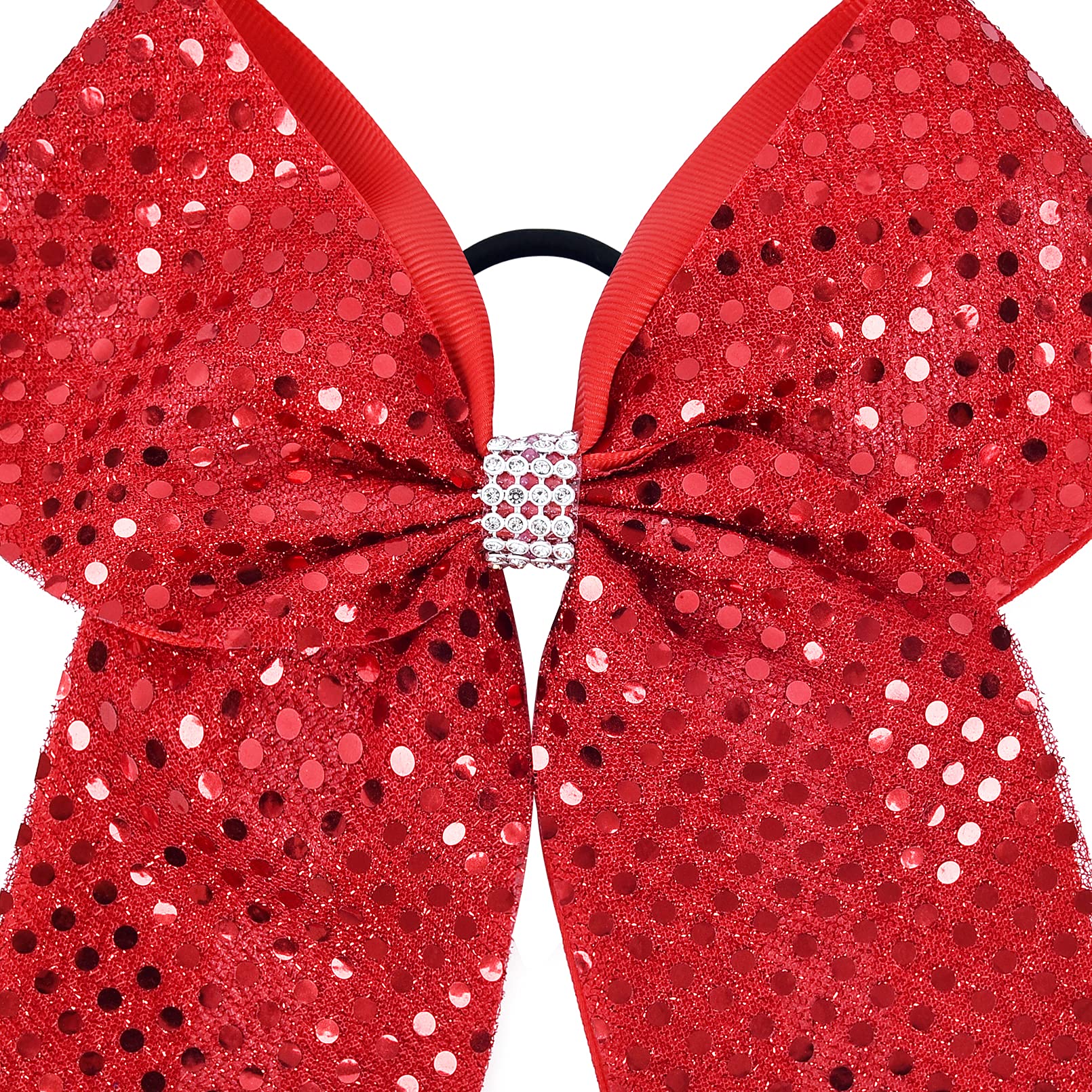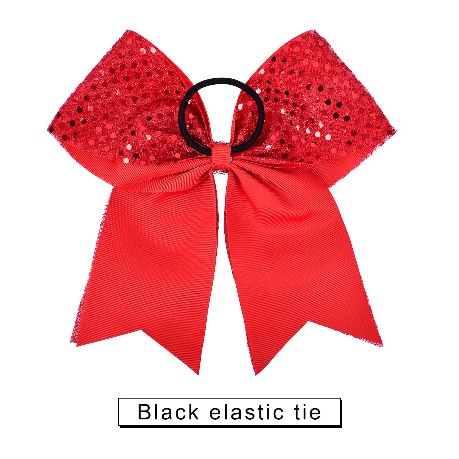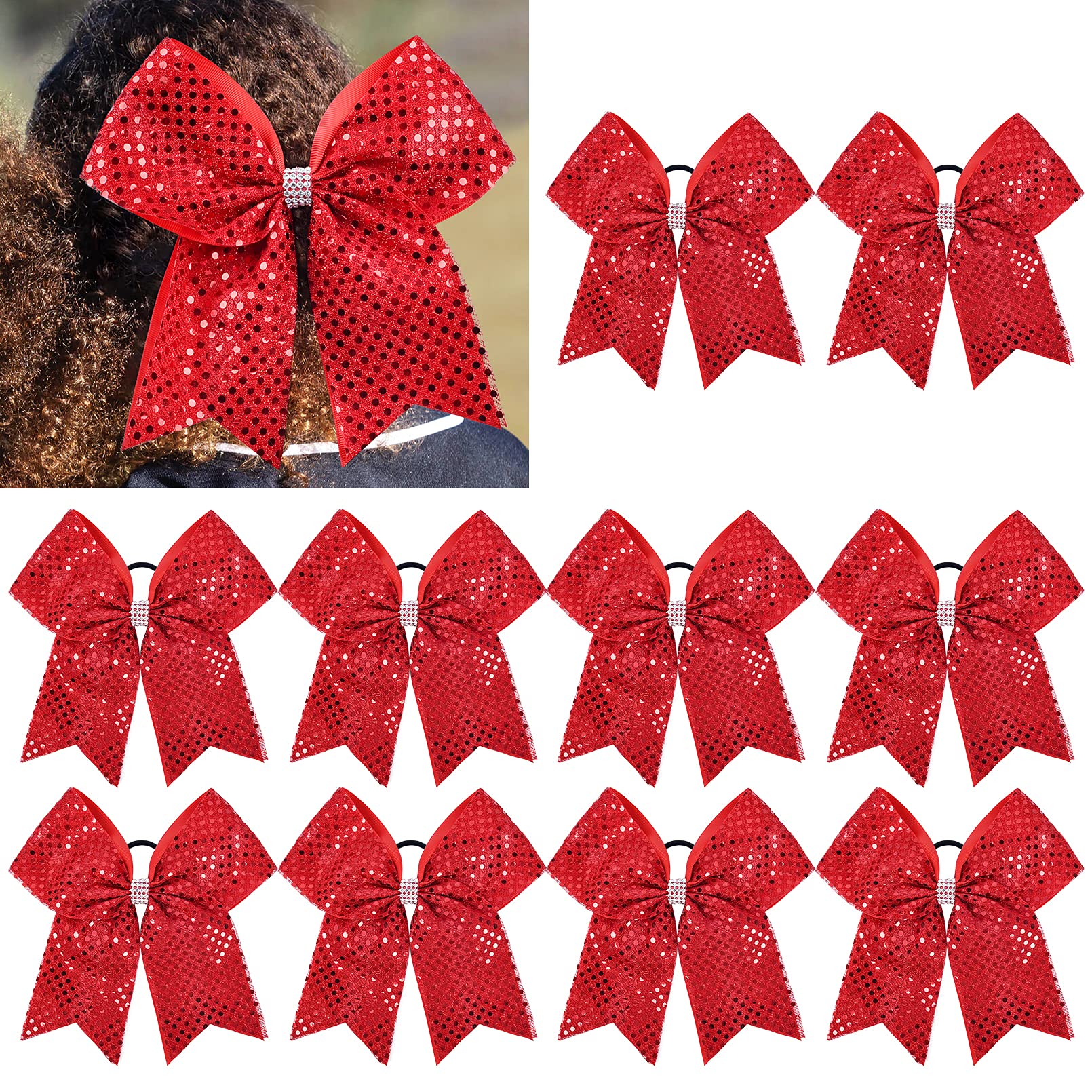 - 【Cheer Bow Size】-- 10PCS glitter red cheer bows are made with 3' quality grosgrain ribbon secured to a comfortable elastic ponytail holder and measured approximately 8' across.