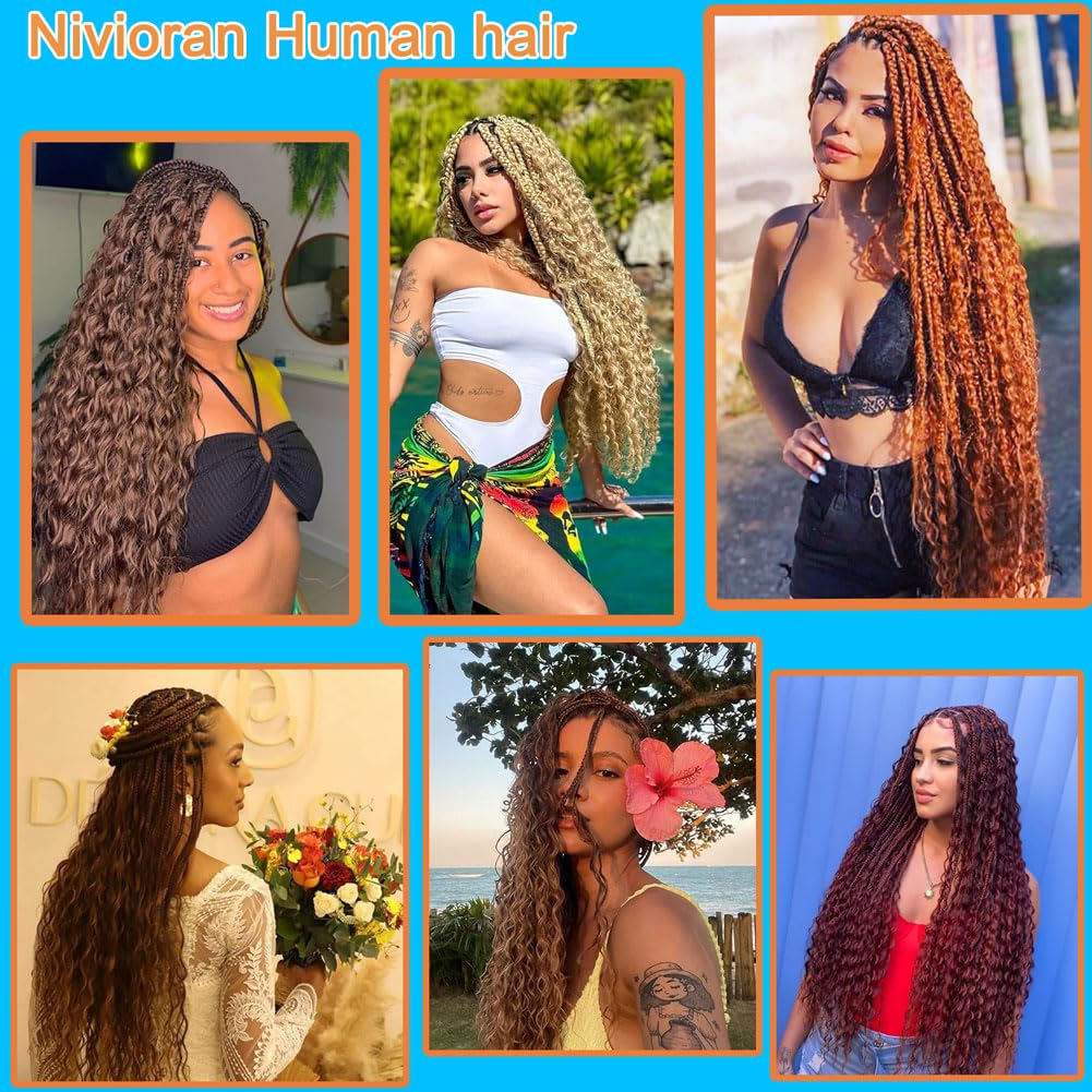 - HUMAN HAIR BRAIDING HAIR Material: We use 100% unprocessed Brazilian virgin human hair, the texture of our deep wave human hair for boho braids is incredibly soft, smooth, and easy to manage, closely resembling natural hair. It effortlessly creates a more natural-looking hairstyle