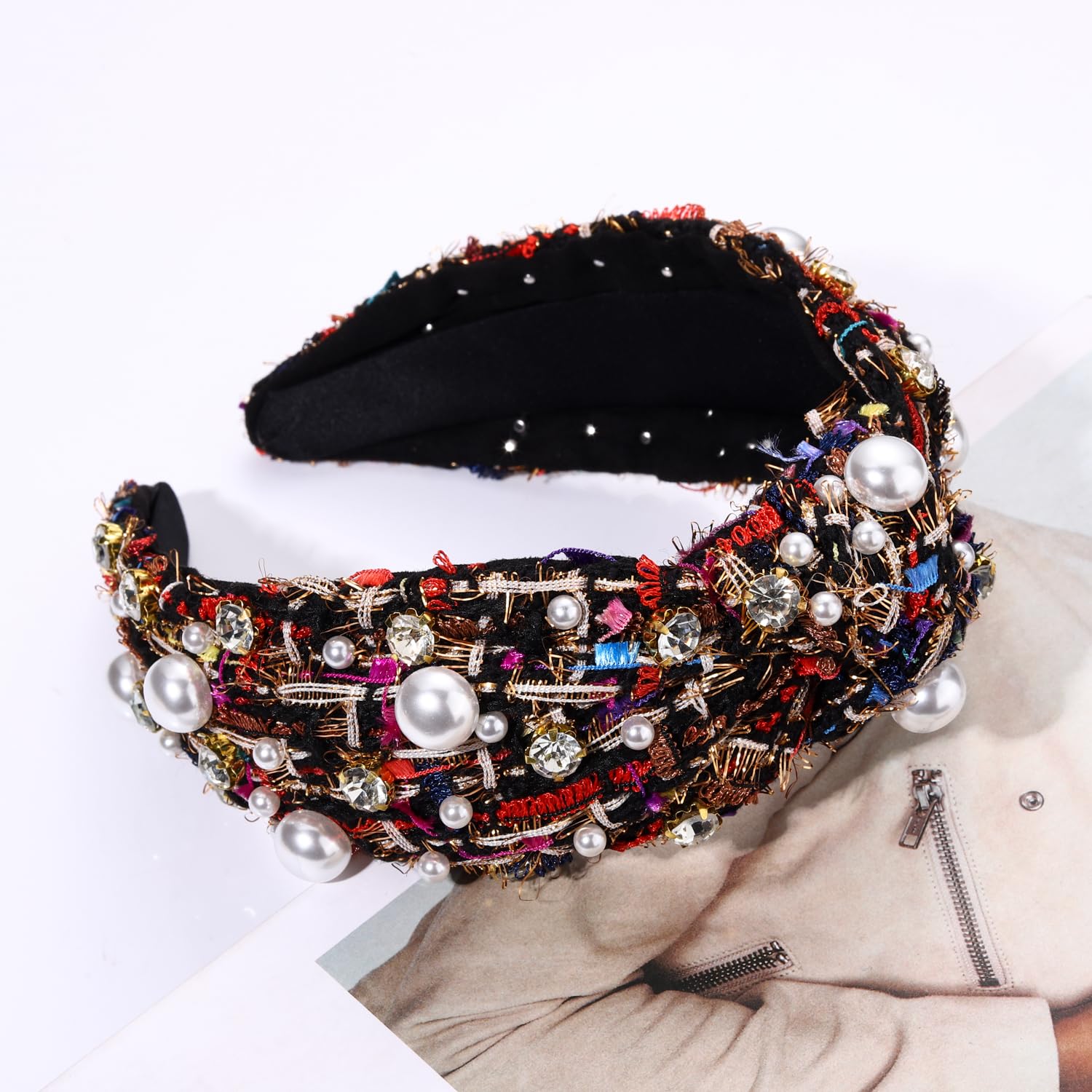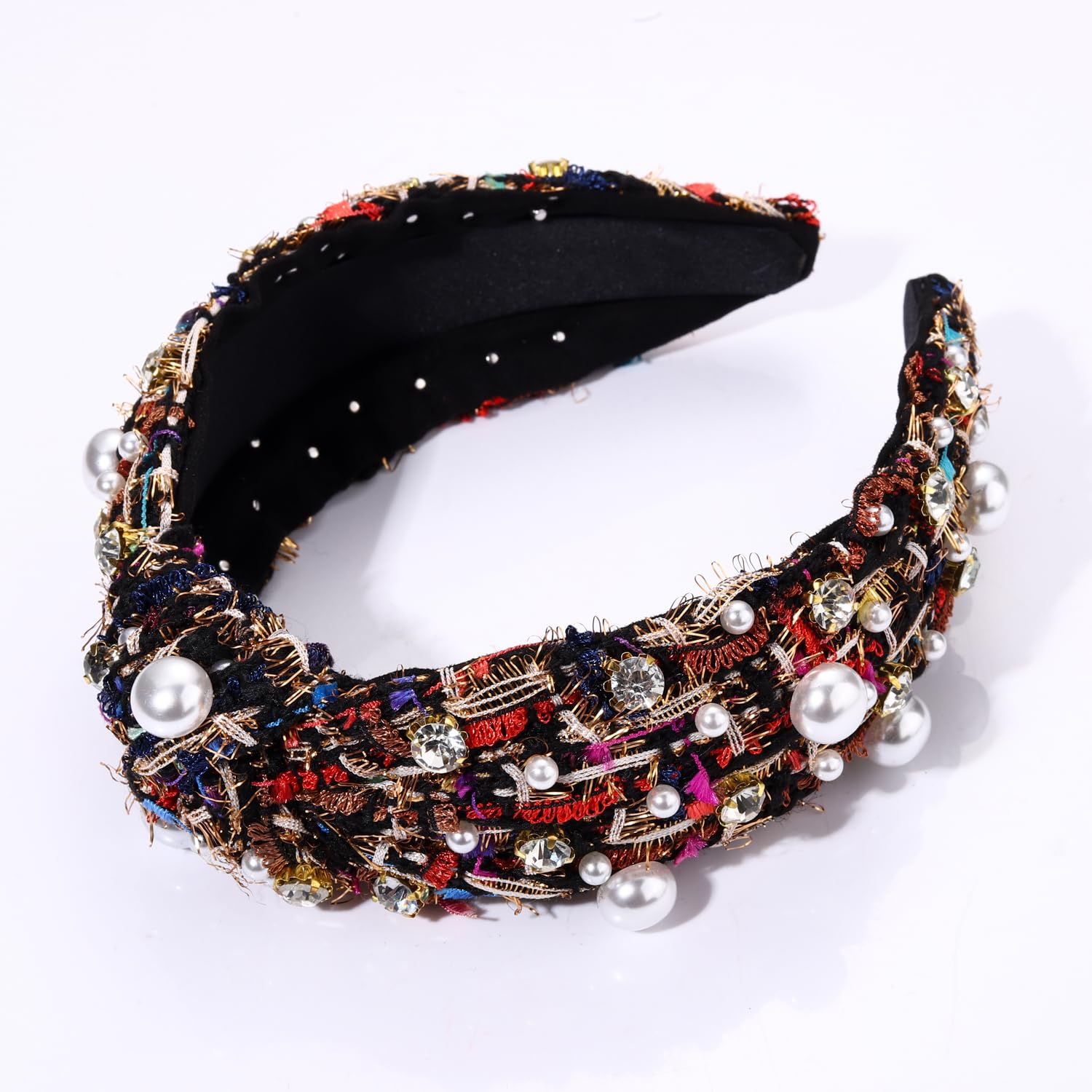 NVENF Christmas Headbands for Women Pearl Crystal Knotted Headband Rhinestone Embellished Jeweled Headbands Womens Christmas Holiday Hair Accessories Festive Party Favors (Multicolor)