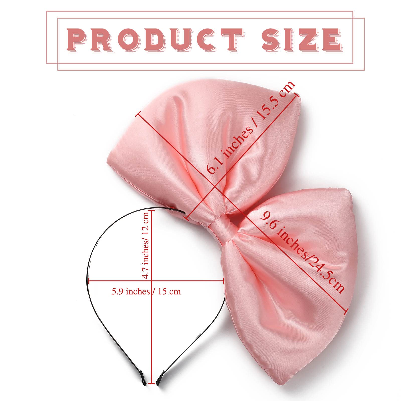 - Pink headbands with bow are approx 10.8*9.6 inches/27.5*24.5 cm(Bow : 9.6*6.1 inches/24.5*15.5 cm ; Hair Hoop : 5.9*4.7 inches/15*12 cm).Costume bow is glued to one side of the bow hairbands rather than centered, and the big bowknot is not removable.