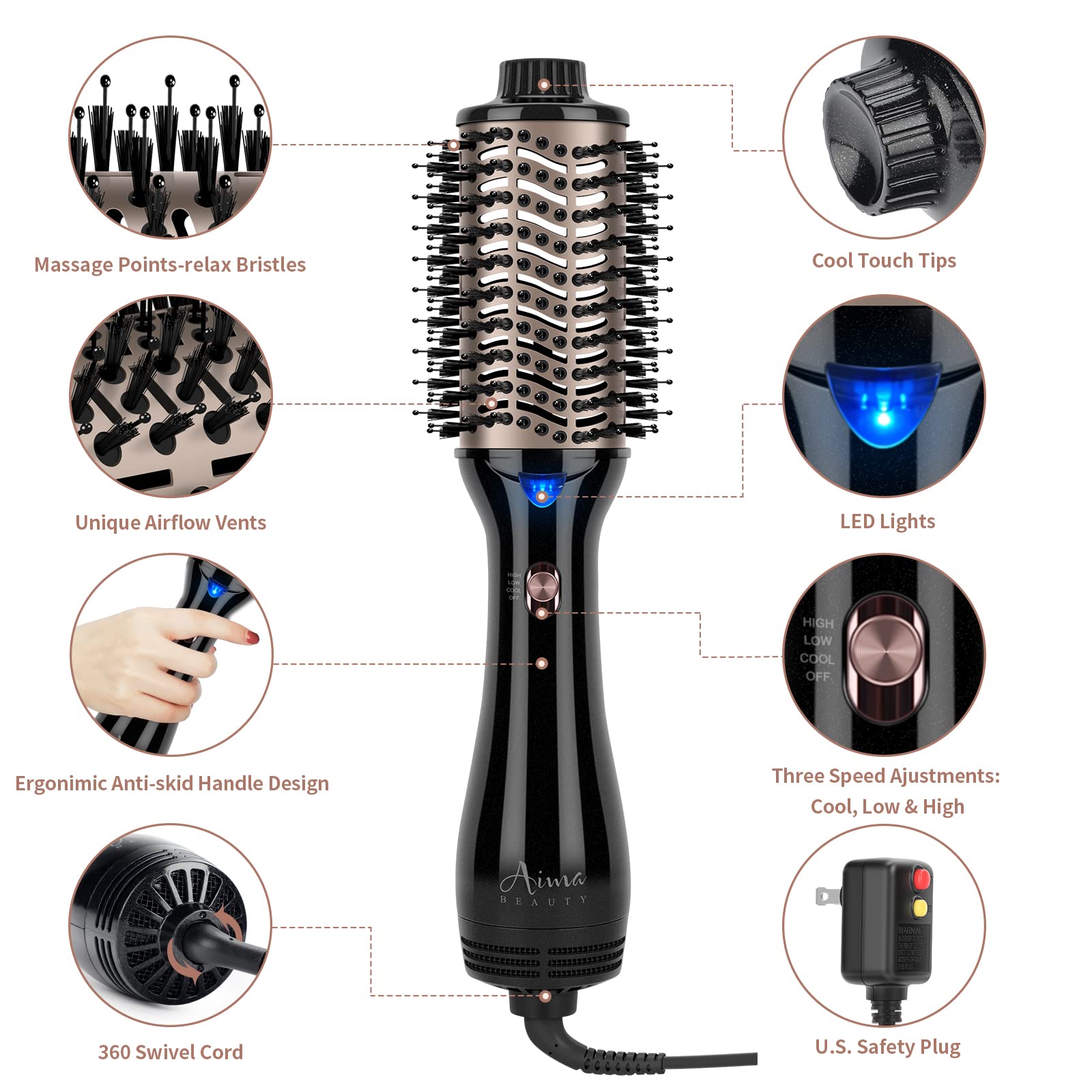 - Negative Ionic Technology - One step hair dryer brush with 360° release of negative ions design and ceramic coating can saturate the airflow, can increase the moisture of your hair. This helps condition and make hair shinier while reducing frizz and static, and preventing the hair from splitting. Perfect for dry and wet hair all hair types.