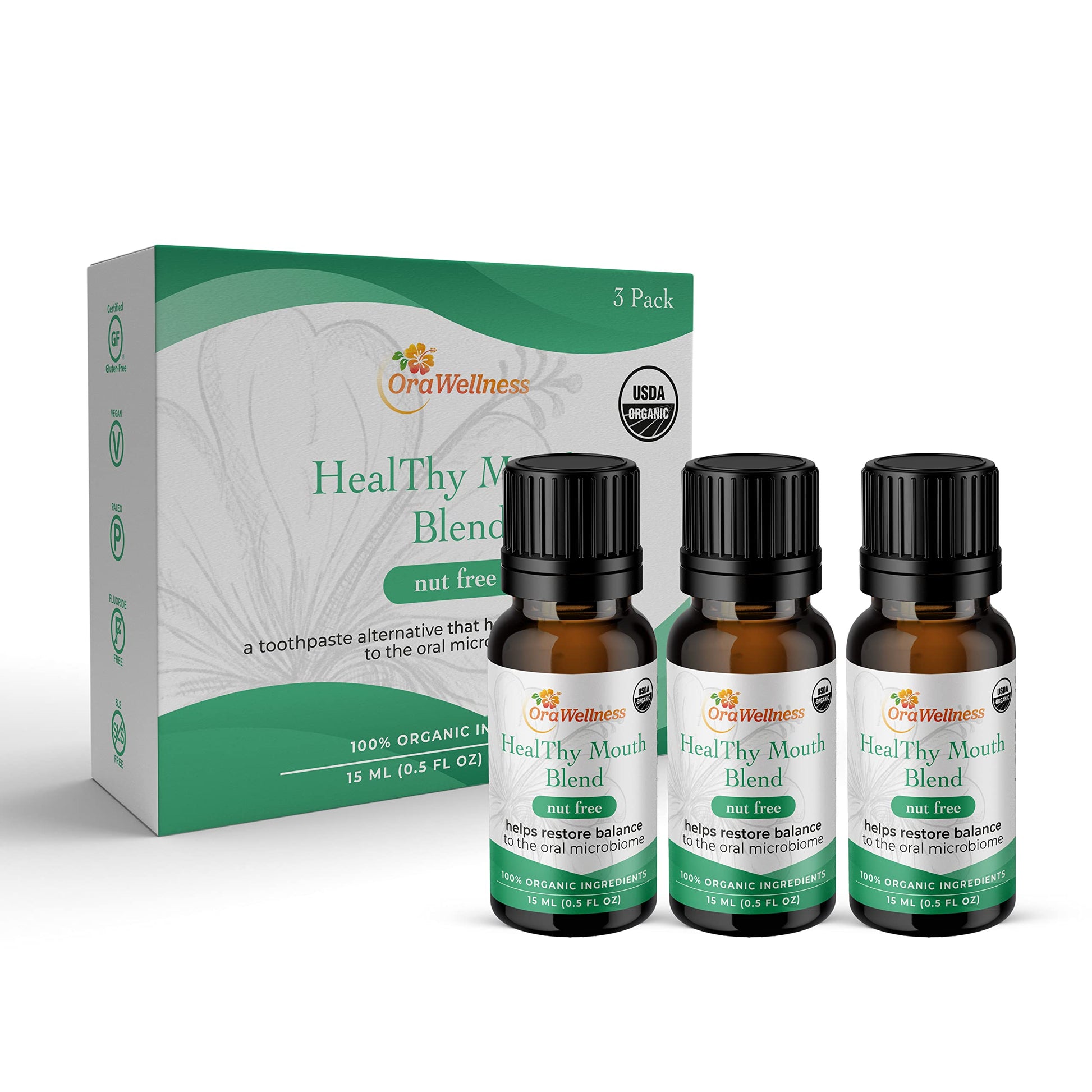 - ALL NATURAL, NUT FREE + ORGANIC herbal liquid tooth paste oil for tooth ache, abscess, periodontal disease, halitosis and bad breath treatment, bleeding and receding gums. Our Healthy Mouth Blend is the perfect complement to our Natural Whitening Tooth Powder. Restore balance to your mouth for healthy, strong teeth and gums. Remineralize teeth by increasing saliva production.