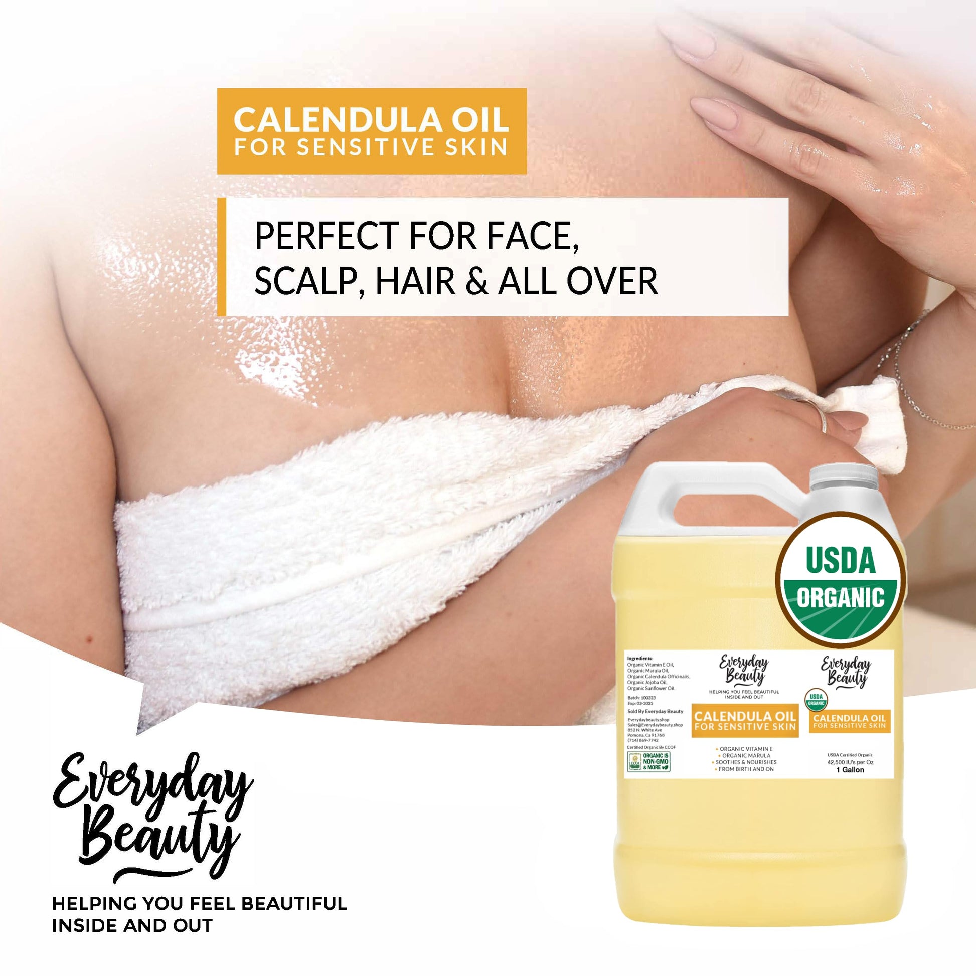 Organic Calendula Oil For Sensitive Skin -Bulk 1 Gallon- USDA Organic Certified 100% All Natural Plant Based, Lightweight & Unscented Gentle Soothing Oil For Sensitive Skin - For Face, Skin & All Over