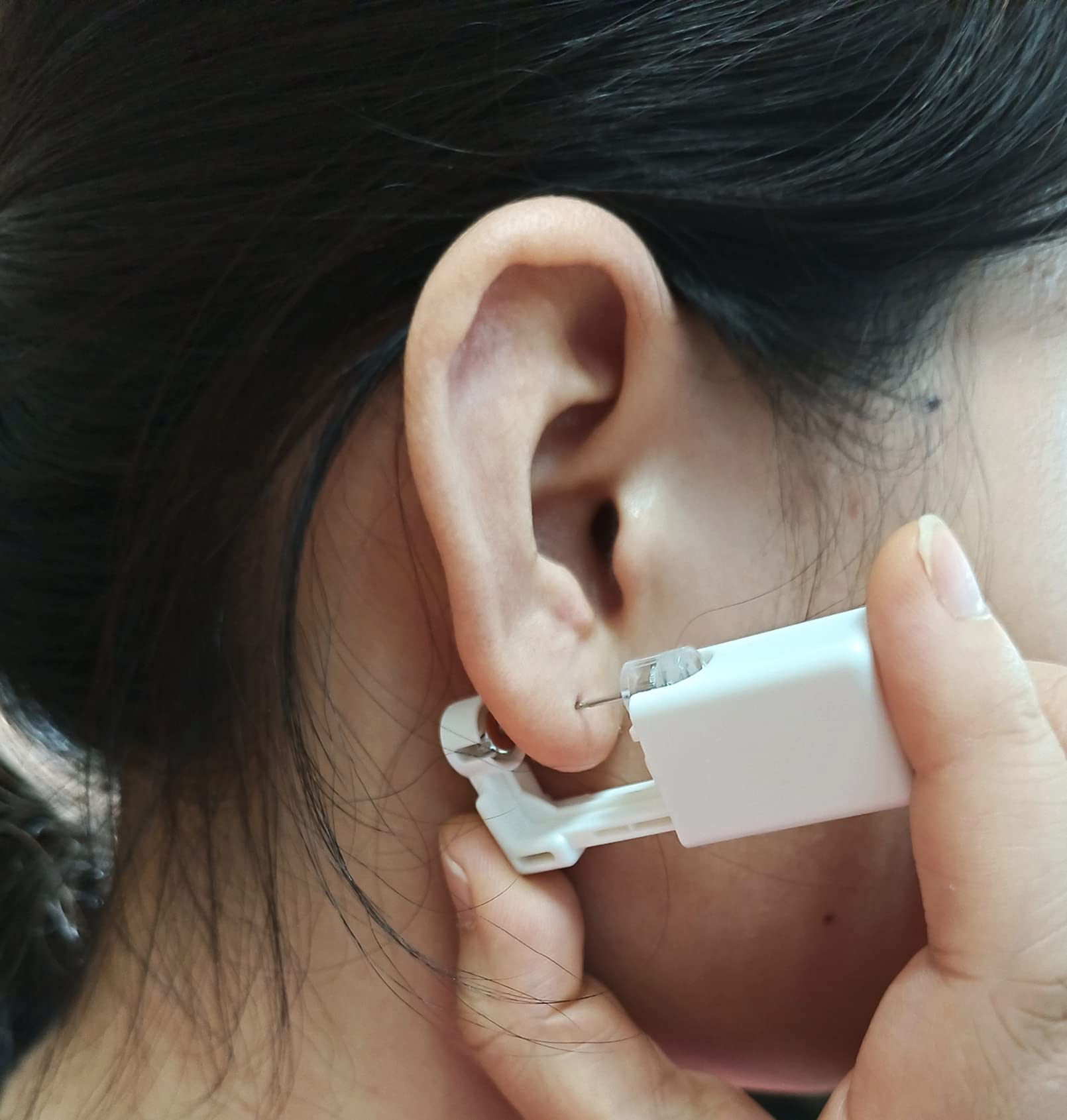 - Easy to use: You can even pierce your ears yourself! It's as simple as using a stapler. Just press it quickly and firmly. Note Since this is a self-destructing 'one-time' use kit, please do not 'try' or 'test' it by pressing it.