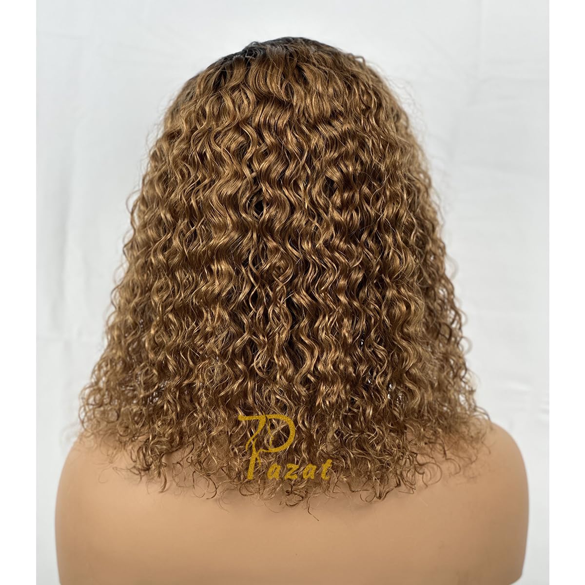 Pazat Ombre Lace Front Wig Human Hair 1B/30 Colored Wigs Short Deep Wave Black to Blonde Curly Bob Lace Frontal Wigs 13x4 HD Glueless Wigs Human Hair for Black Women Pre Plucked180% Density 10 Inch